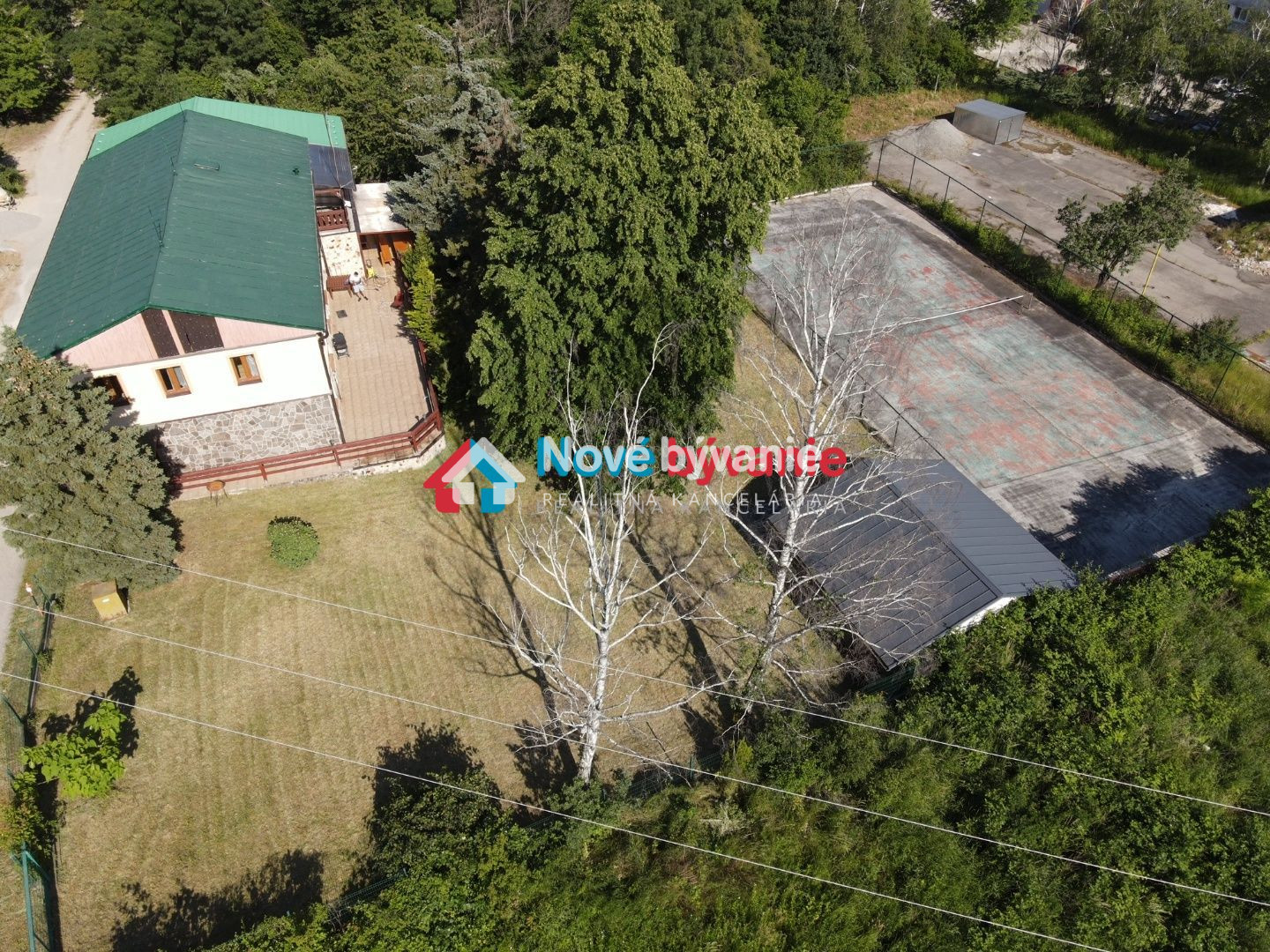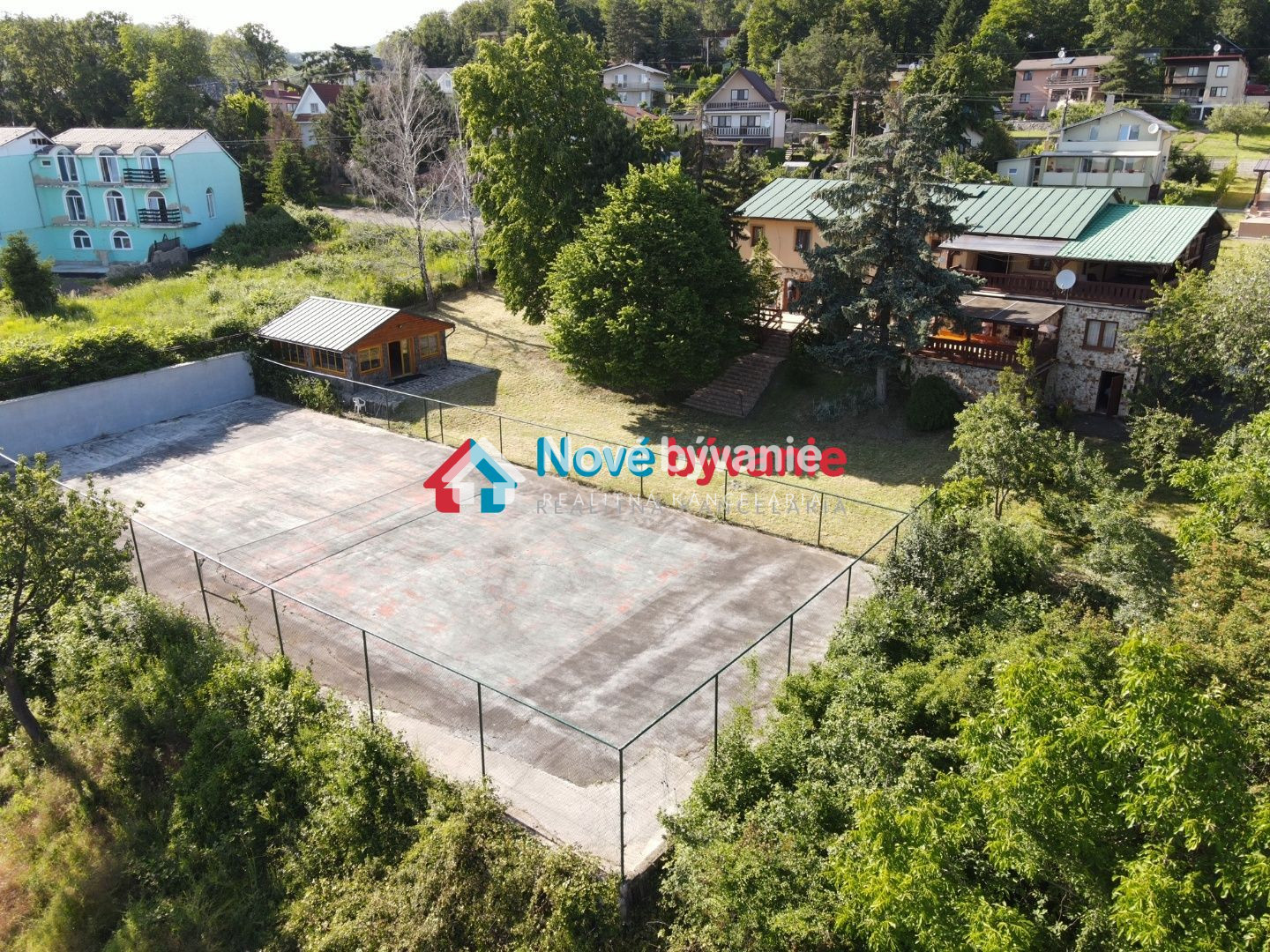 Dvojposchodový objekt s čiastočnou pivnicou, Garáž pre jedno auto, Ohradené asfaltové parkovisko s kapacitou pre 8 vozidiel, Tenisový kurt pre aktívnu zábavu Plne krytý altánok s kapacitou pre 30 ľudí, ideálny pre oslavy a udalosti