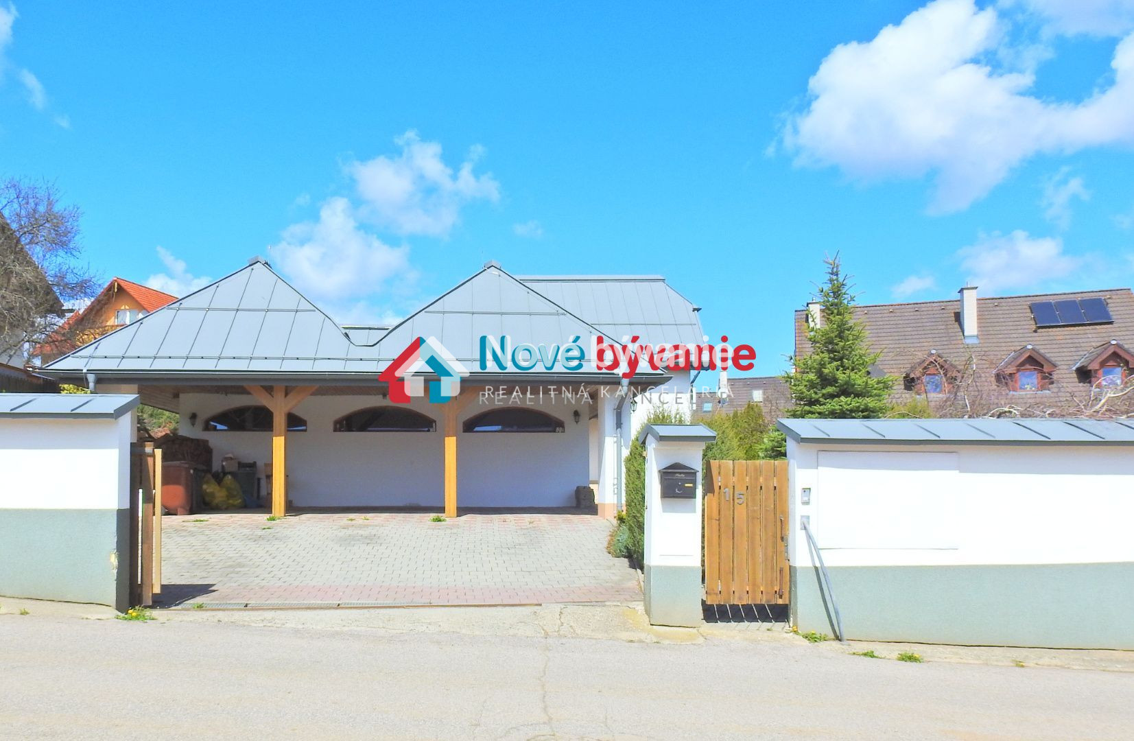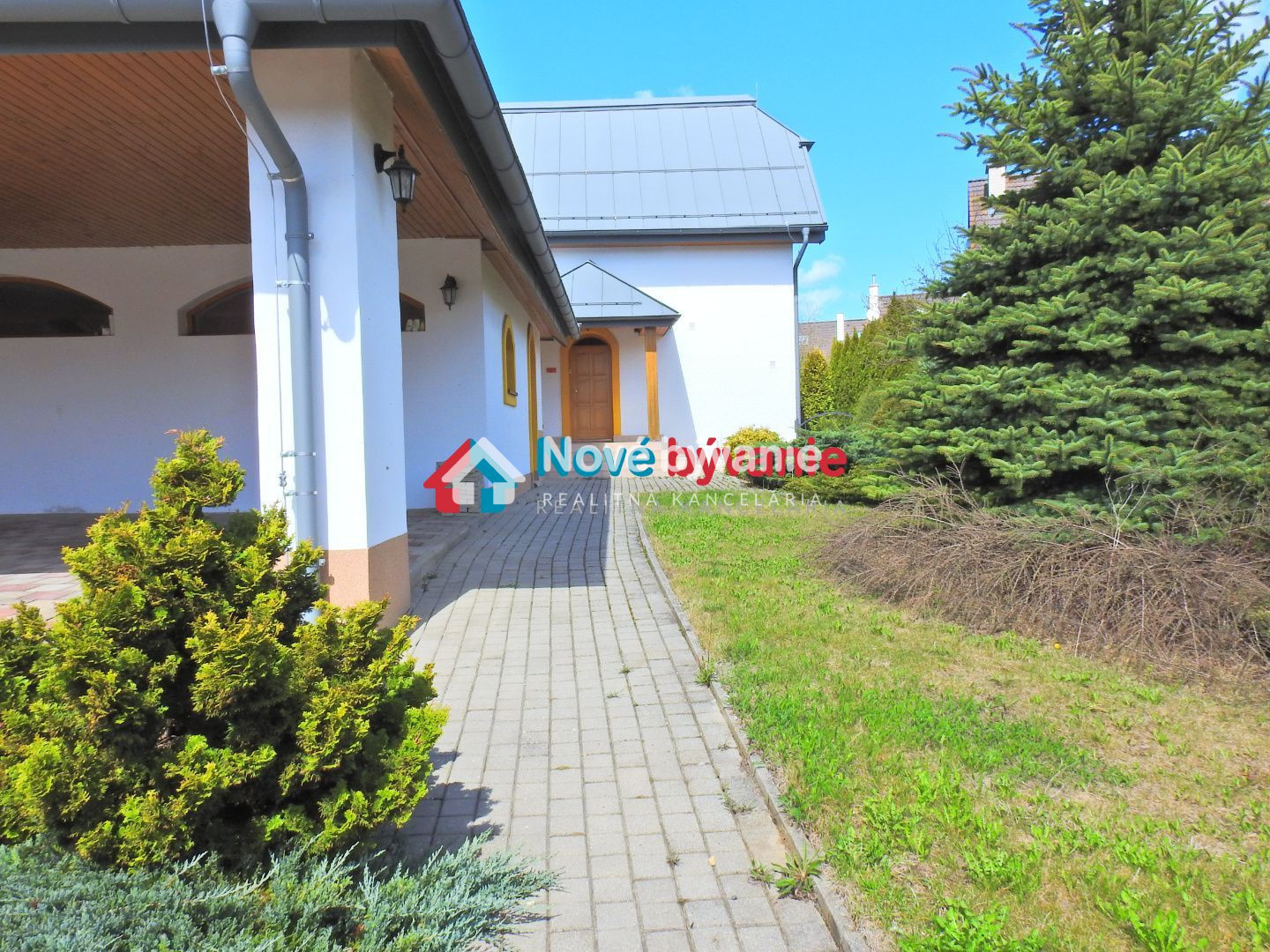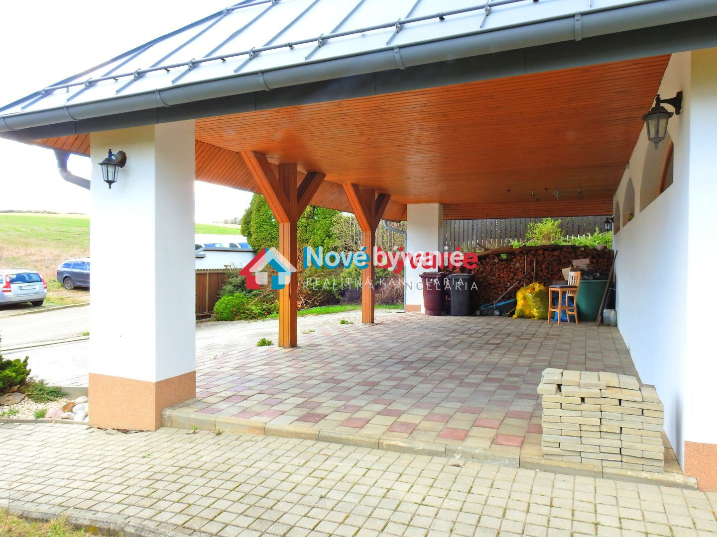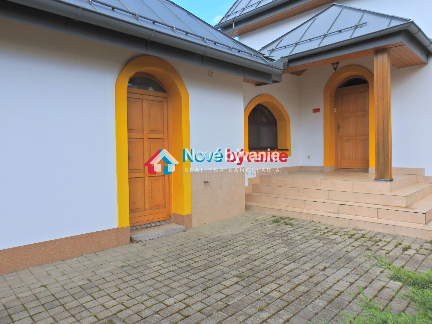 Dovnútra sa dostaneme cez bránu na diaľkové ovládanie respektíve cez bráničku s videovrátnikom. Zaparkujeme vo vnútri pod prístreškom pre 3 autá a chodníčkom sa dostaneme ku vstupom. Jeden vstup (naľavo) je do podnikania a druhý vstup (priamo po schodíkoch) do bývania.