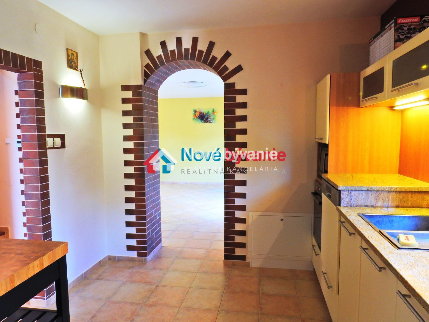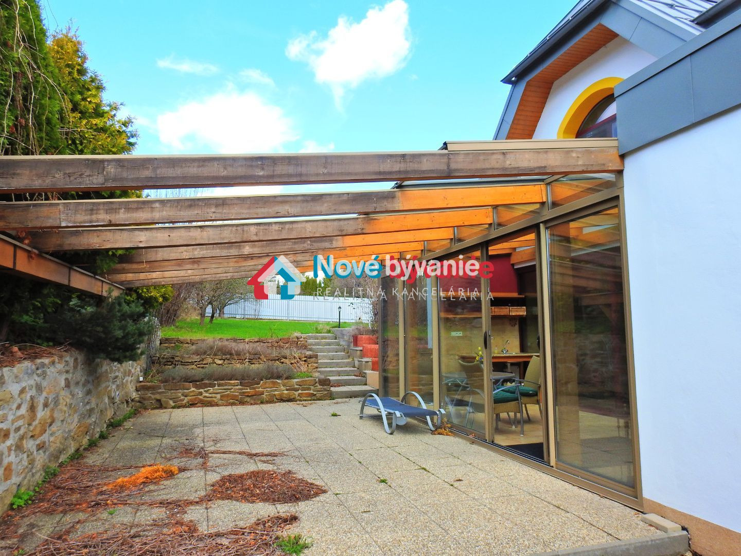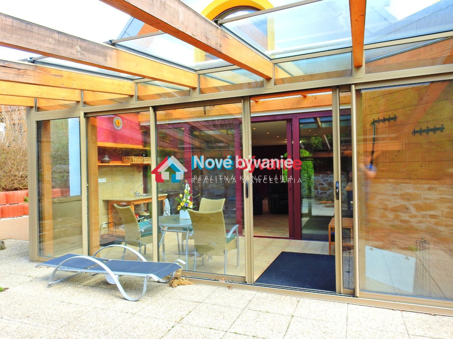 Bývanie ponúka tri veľmi priestranné spálne na poschodí a kúpeľňu. Jedna spálňa má východ na terasu/balkon. Na prízemí zádverie, potom je vstupná chodba so schodišťami na horné podlažie a dole do pivnice, potom kuchyňa, obývačka, kúpeľňa s WC a hosťovská izba. Kuchyňa je samostatná izba, plne vybavená spolu so špajzou na potraviny. Obývačka je obrovská , pekne presvetlená a atmosféru dotvára teplý liatinový krb na drevo. Dominantou obývačky je však jej zimná záhrada. Je to oáza svetla a tepla. Prekrásny priestor s východom vonku na terasu. Tienenie pred silným slniečkom zabezpečia elektrické rolety na strope.