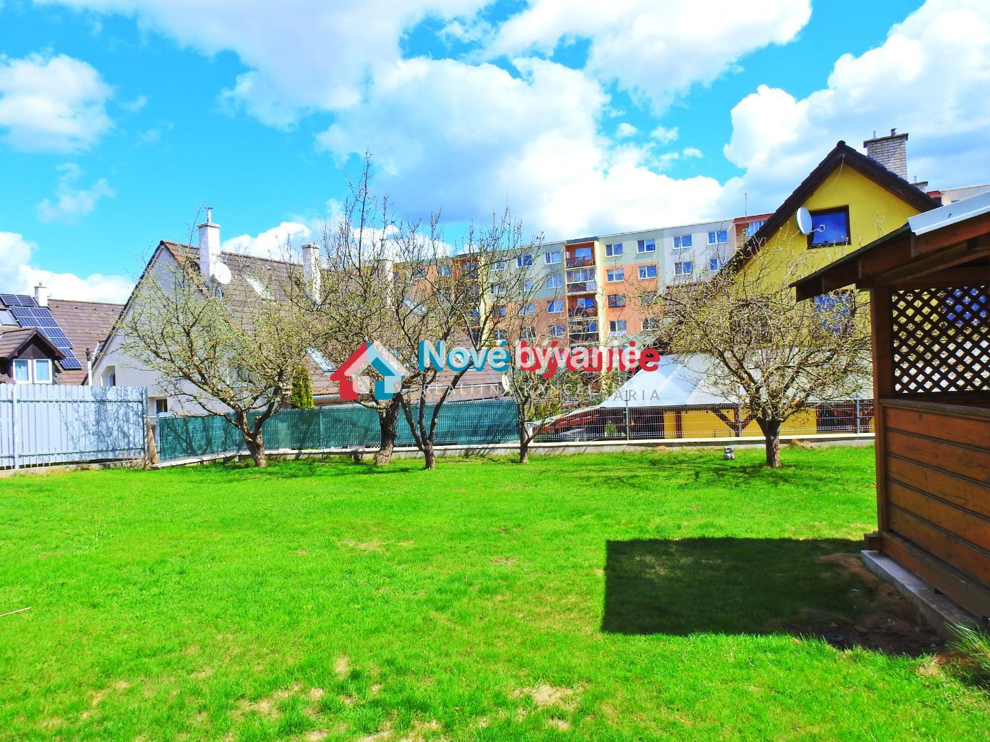 Celý pozemok (asi 800m2)je udržiavaný, s ovocnými stromami, trávnikom, dokonca je tu záhradný domček s posedením. Parkovanie pod prístreškom pre 3 autá, pred prístreškom tiež 3 a vonku na ulici je stále dostatok parkovacieho miesta.