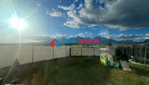 Vchádzame bráničkou na pozemok a vstupné dvere nas zavedú rovno do predsiene/zádveria. Odtiaľ sa dostaneme rovno do priestrannej obývačky, spojenej s kuchyňou a jedálňou. Z gauča v obývačke je priamy výhľad na Tatry a tiež východ vonku na terasu a dvor. Dvor je oplotený s dostatkom súkromia.