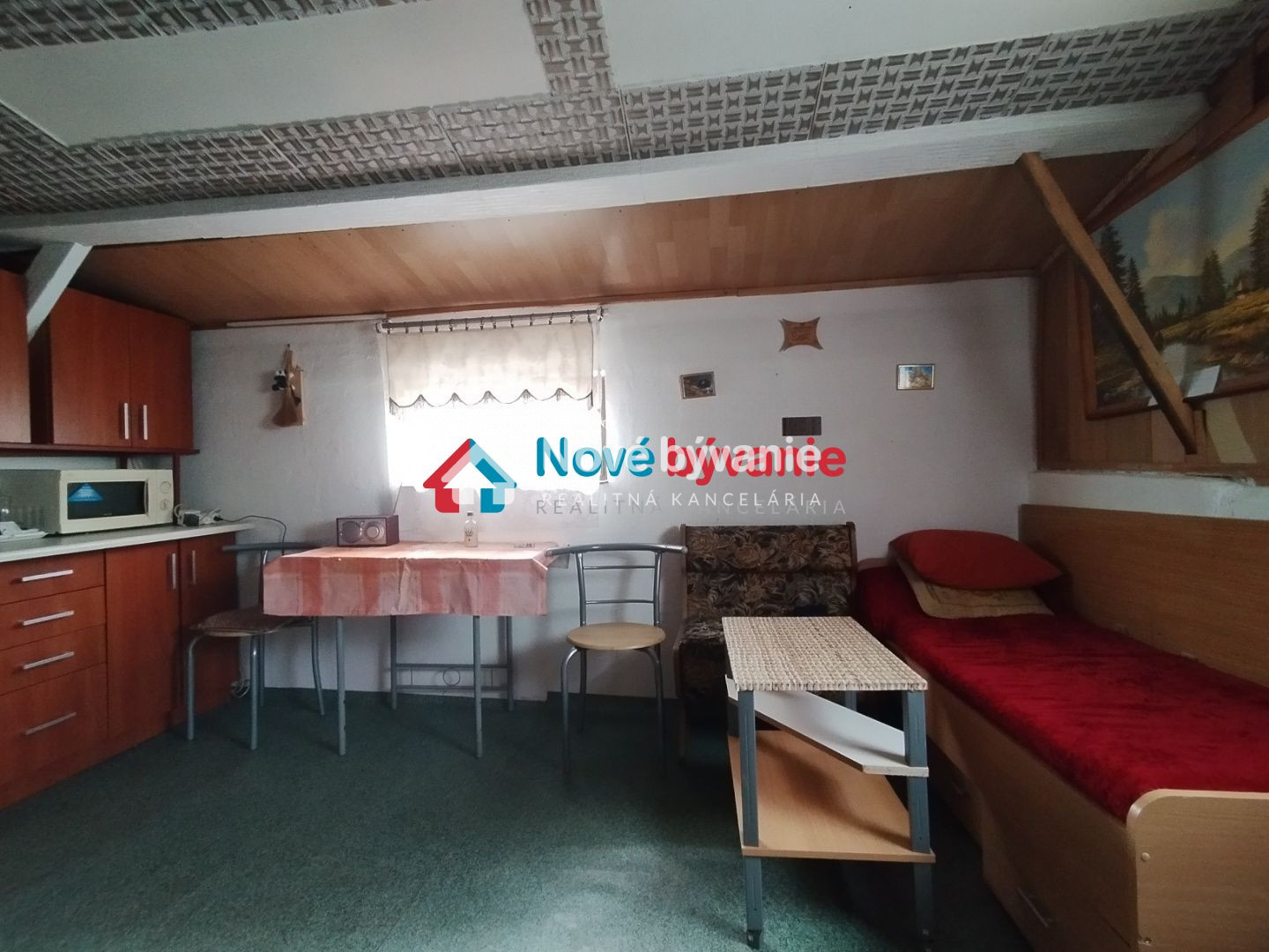 Dispozícia chatky: vstupná chodba, oddychová miestnosť s kuchynským kútom (chladnička, mikrovlnná rúra, plynový horák na prípravu jedla) a vyvýšená spacia časť.