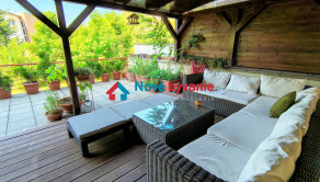 Obrovská terasa (9,6 m široká, hĺbka cca 3,5 m s prekrytím z masívu) – ideálna na relax, grilovanie či rodinné posedenia