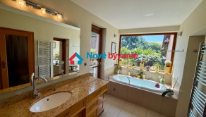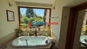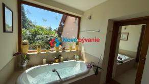 Kúpeľne s virivkovou vaňou, 3x sprcha, 3x toaleta, bidet, fínska sauna, umývadlá, zrkadlá, jedinečné výhľady do záhrady...budete sa cítiť ako v kúpeľoch.