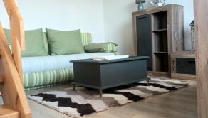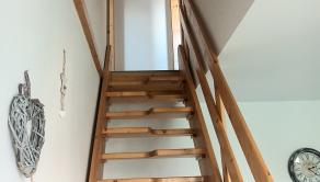 Z obývačky vedú schody na poschodie, kde sa nachádzajú 2 spálne.
