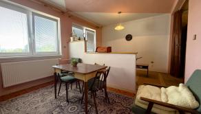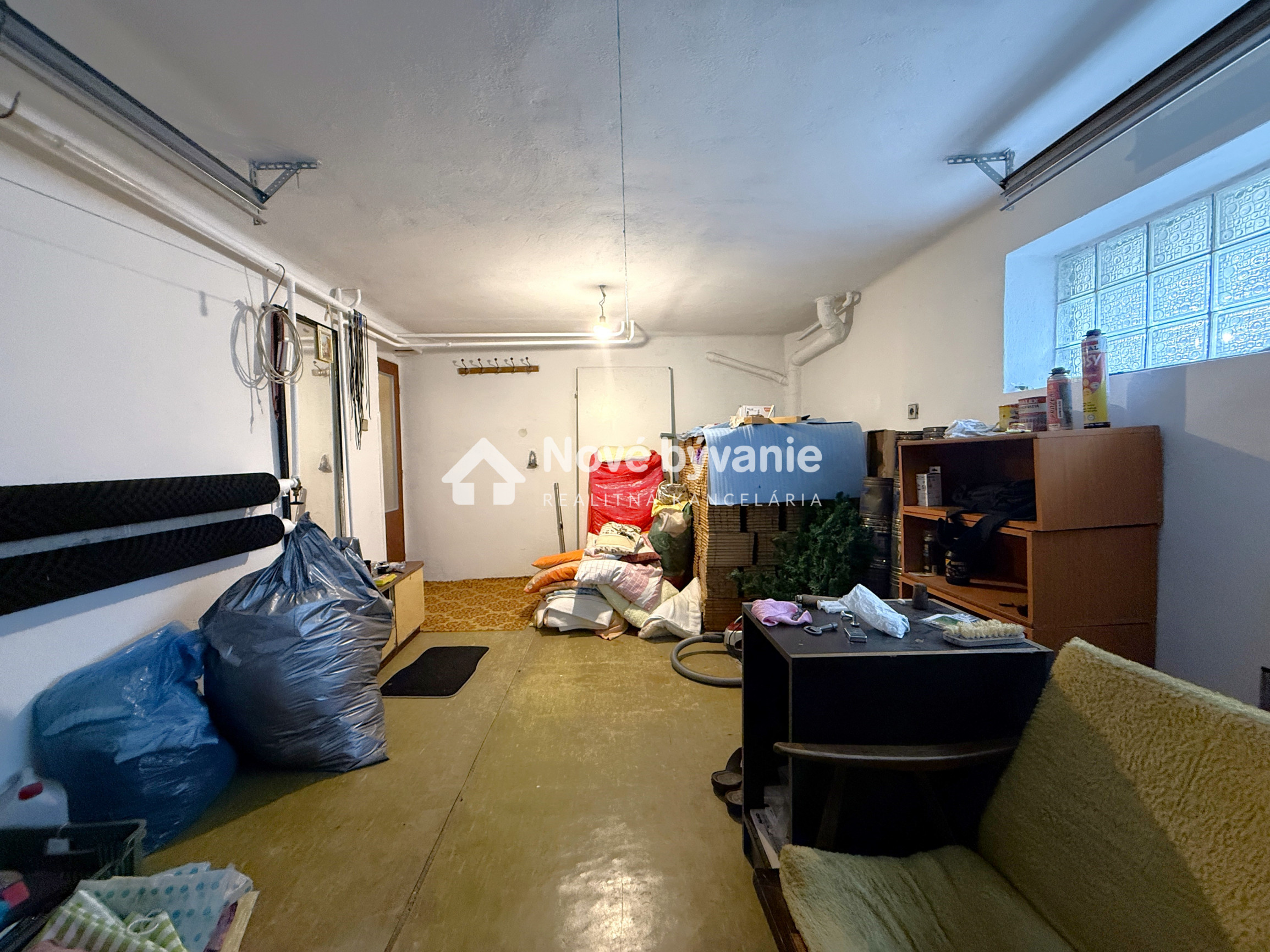 Dispozične je riešený tak, že na prízemí sa nachádza vstupná chodba so schodiskom, samostatná toaleta, kúpeľňa, priestranná obývacia izba s výstupom na loggiu, kuchyňa s jedálňou a tri samostatné izby. Suterén ponúka chodbu, garáž, jednu obytnú miestnosť, špajzu, kuchynku s výstupom do záhrady, kúpeľňu s toaletou, kotolňu na tuhé palivo a pivnicu.