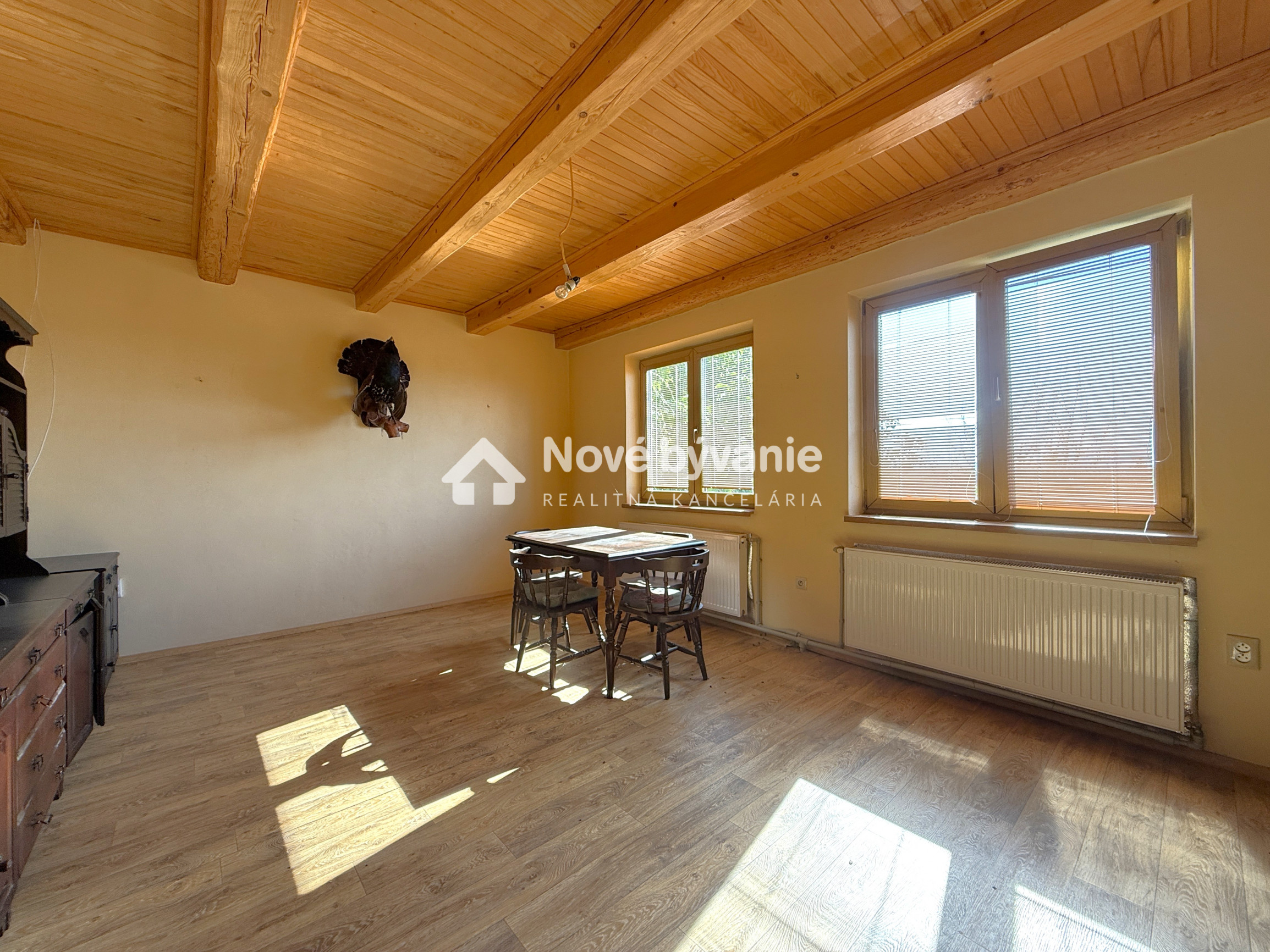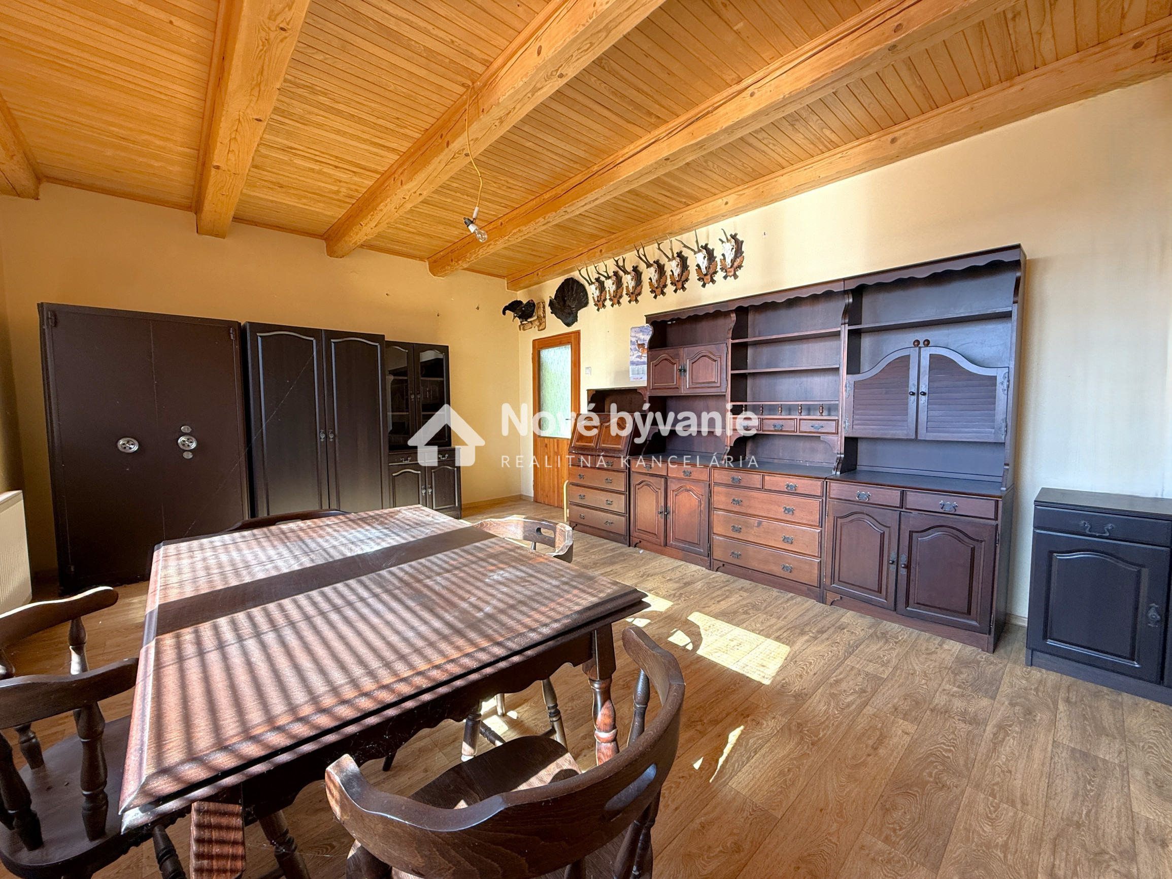Dom je napojený na obecnú vodu a elektrinu, vykurovanie je zabezpečené tuhým palivom. Dispozične pozostáva z dvoch nepriechodných izieb, kuchyne, kúpeľne a predsiene, z ktorej vedie vstup do podkrovia. Podkrovie je navrhnuté tak, aby sa po menších úpravách mohlo využiť ako obytný priestor – je tu možnosť vytvoriť ďalšie dve izby. V suteréne sa nachádza priestranná miestnosť využívaná ako dielňa s kotolňou, dve menšie úložné priestory a pivnica. Pod schodmi je praktický priestor na uskladnenie dreva.