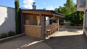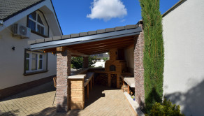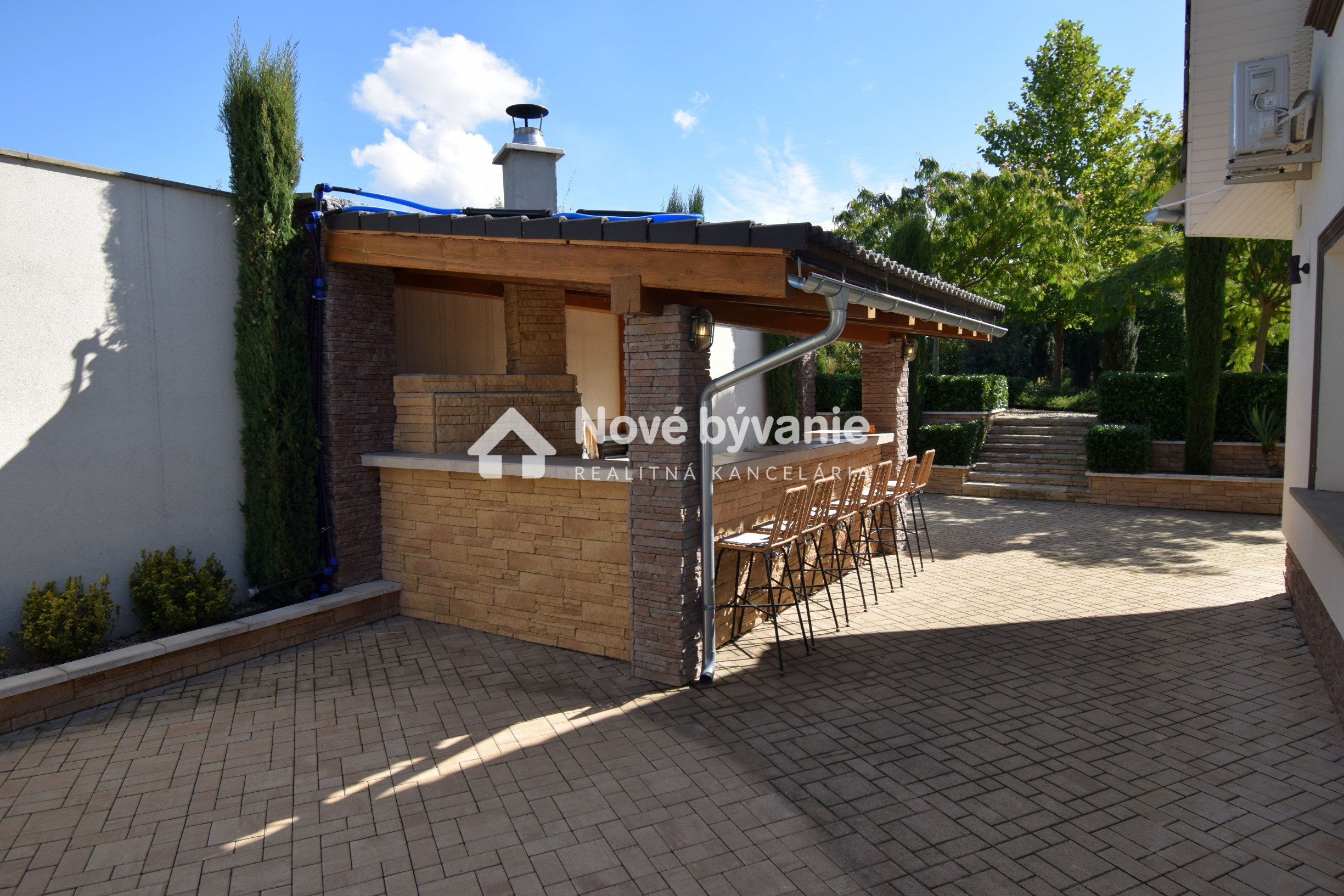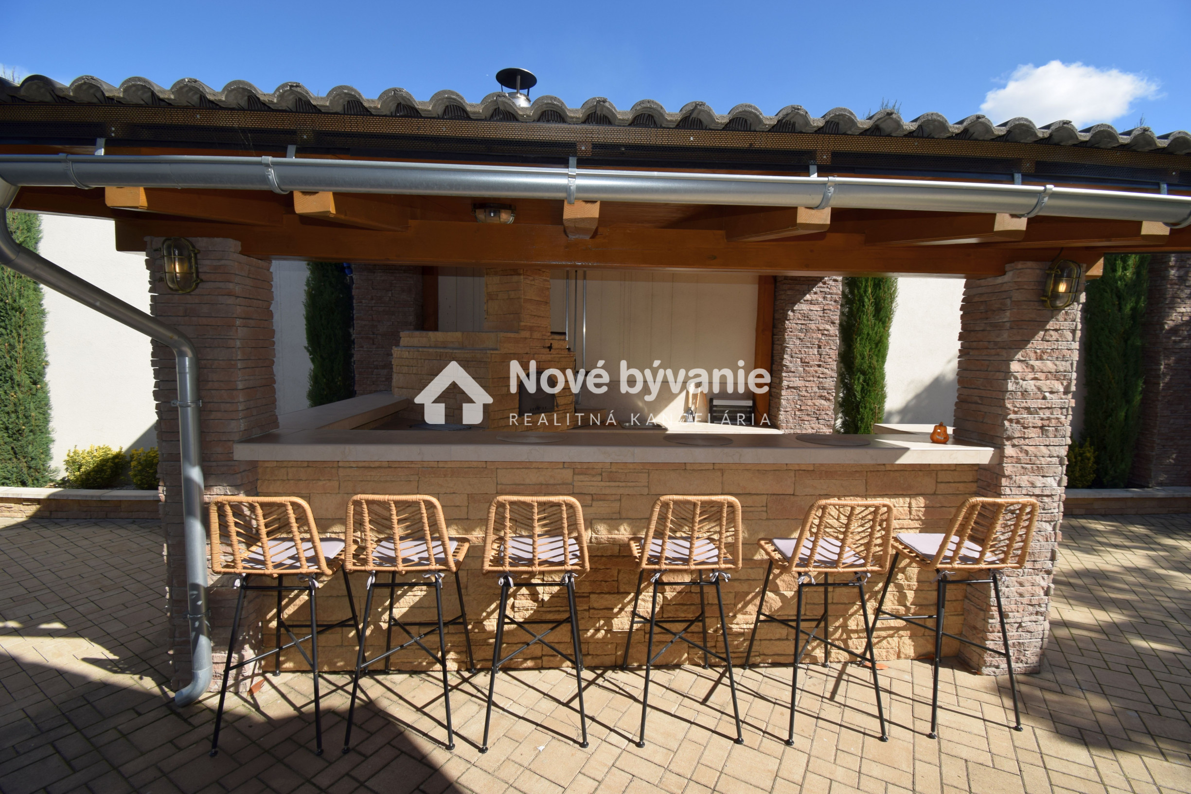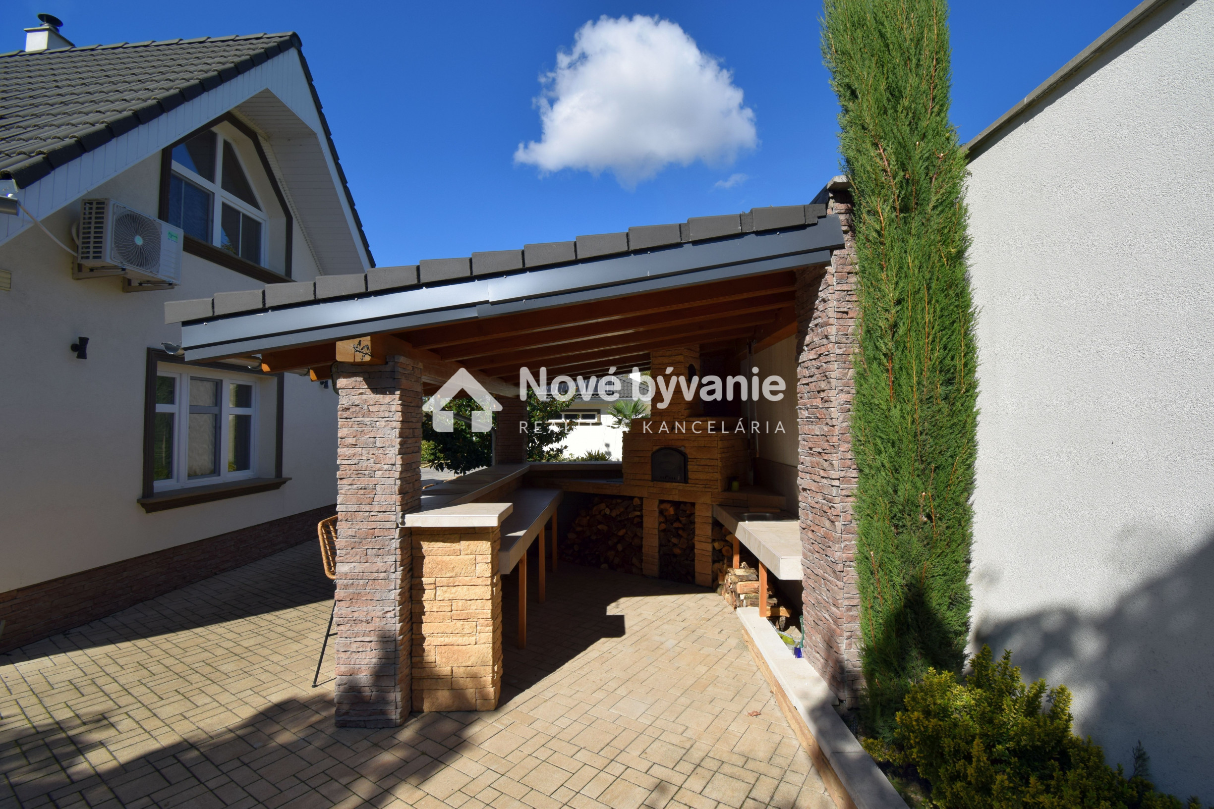 K dispozícii je garáž pre dve autá s automatickou bránou, kotolňa o rozlohe 60 m² a samostatný drevený domček s výmerou 80 m², momentálne využívaný ako dielňa. Súčasťou pozemku je aj vonkajšia letná kuchyňa s vlastnou pecou a priestorom na posedenie.