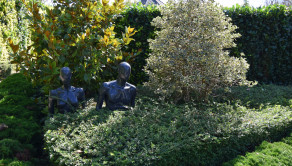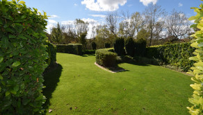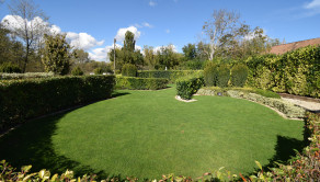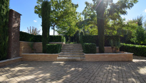 O starostlivosť o rozsiahlu okrasnú záhradu sa stará automatické zavlažovanie a robotické kosačky.
