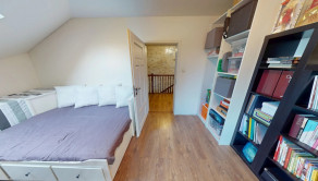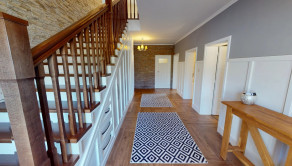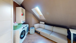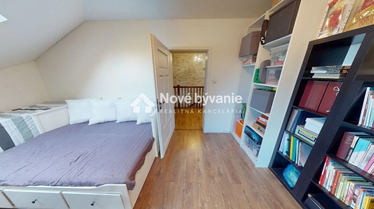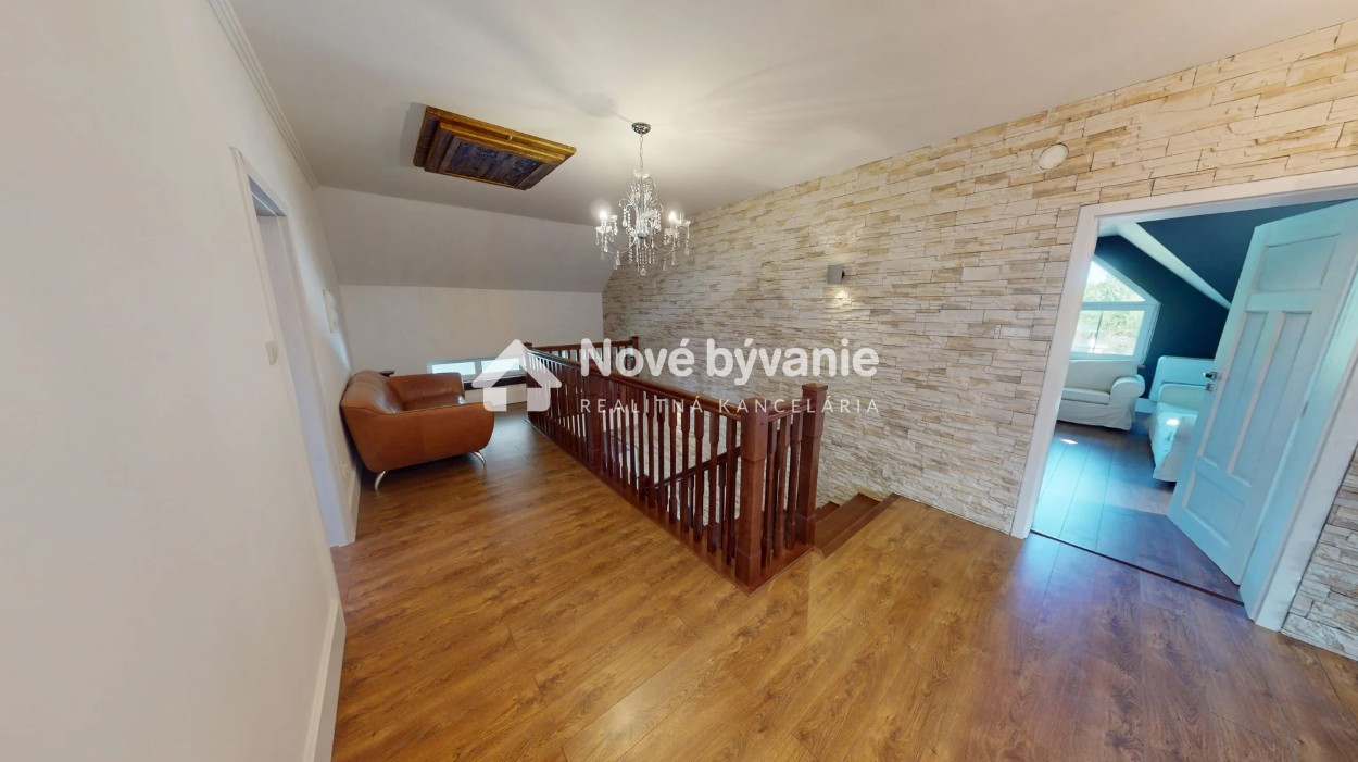 Na poschodí sa nachádza priestranná hala, kúpeľňa s toaletou a tri nepriechodné izby. Schodisko ukrýva praktické úložné priestory a komoru. Komfort bývania zvyšuje klimatizačná jednotka na poschodí, ktorá v letných mesiacoch rýchlo ochladí celý dom.