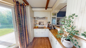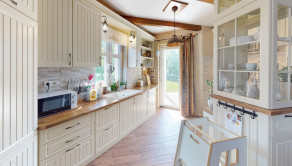 Dispozične je dom veľmi štýlový a praktický. Na prízemí sa nachádza priestranná predsieň, dve nepriechodné izby, veľkorysá kúpeľňa so sprchovacím kútom aj vaňou, samostatná toaleta, technická miestnosť a obývacia izba s krbom spojená s kuchyňou, z ktorej je výstup na terasu s nádherným výhľadom na okolitú prírodu. O príjemnú atmosféru sa postará výhľad na živú „scénu“ – žaby, divé kačky, vtáky, srnky a občas aj korytnačka, ktorá sa v okolí potoka pravidelne objavuje.