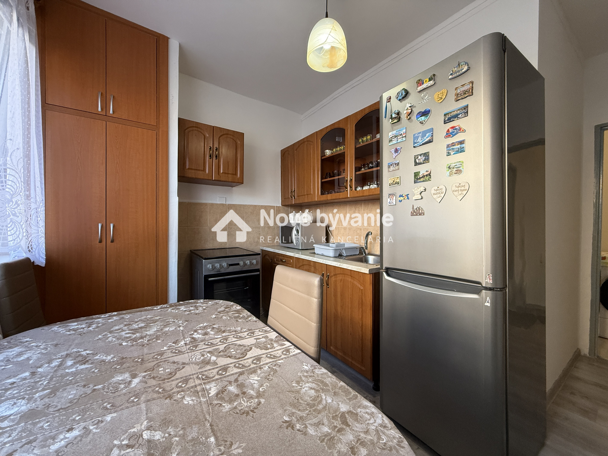 Dispozične byt pozostáva z chodby, kuchyne, dvoch izieb, kúpeľne a samostatnej toalety. V kuchyni je umiestnená nová praktická vstavaná skriňa. K bytu patrí aj pivnica, ktorá ponúka ďalší úložný priestor.