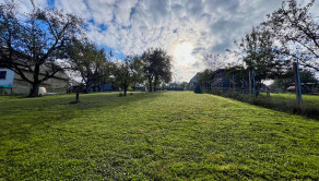 mierne svahovitý terén s ovocnými stromami
