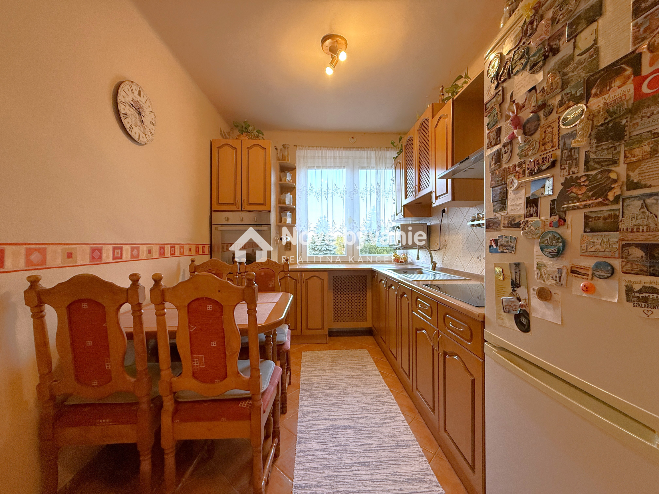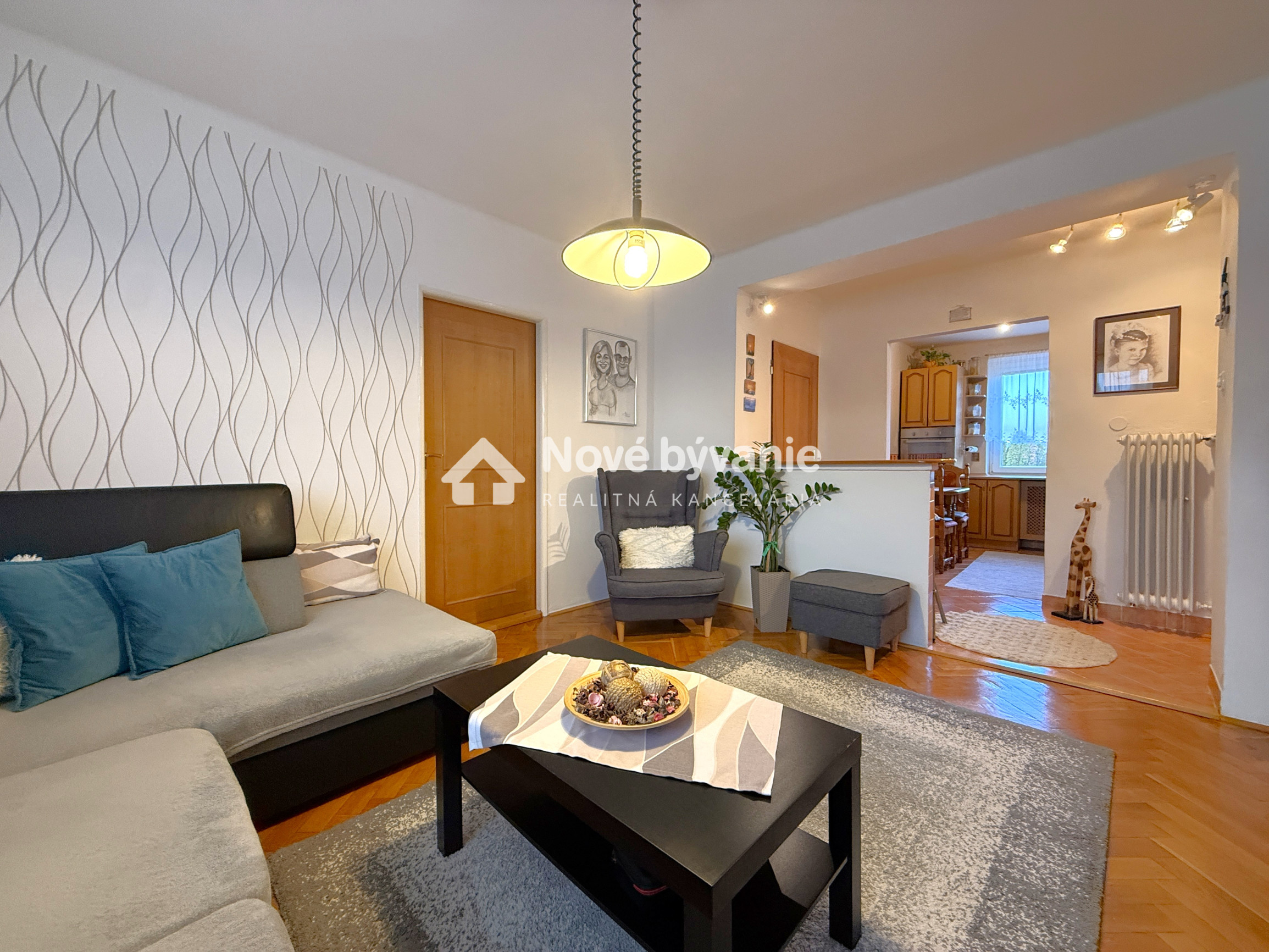 Dispozične pozostáva zo vstupnej chodby, obývacej izby, dvoch nepriechodných izieb, kuchyne a kúpeľne spojenej s toaletou. K bytu prislúcha murovaná pivnica a spoločný oplotený pozemok s výmerou 422 m², na ktorom sa nachádza vlastná garáž a parkovacie miesto.
