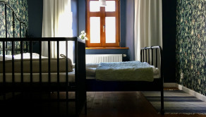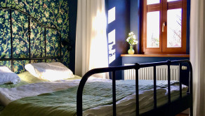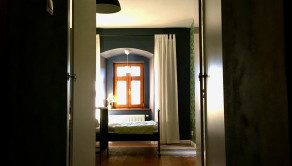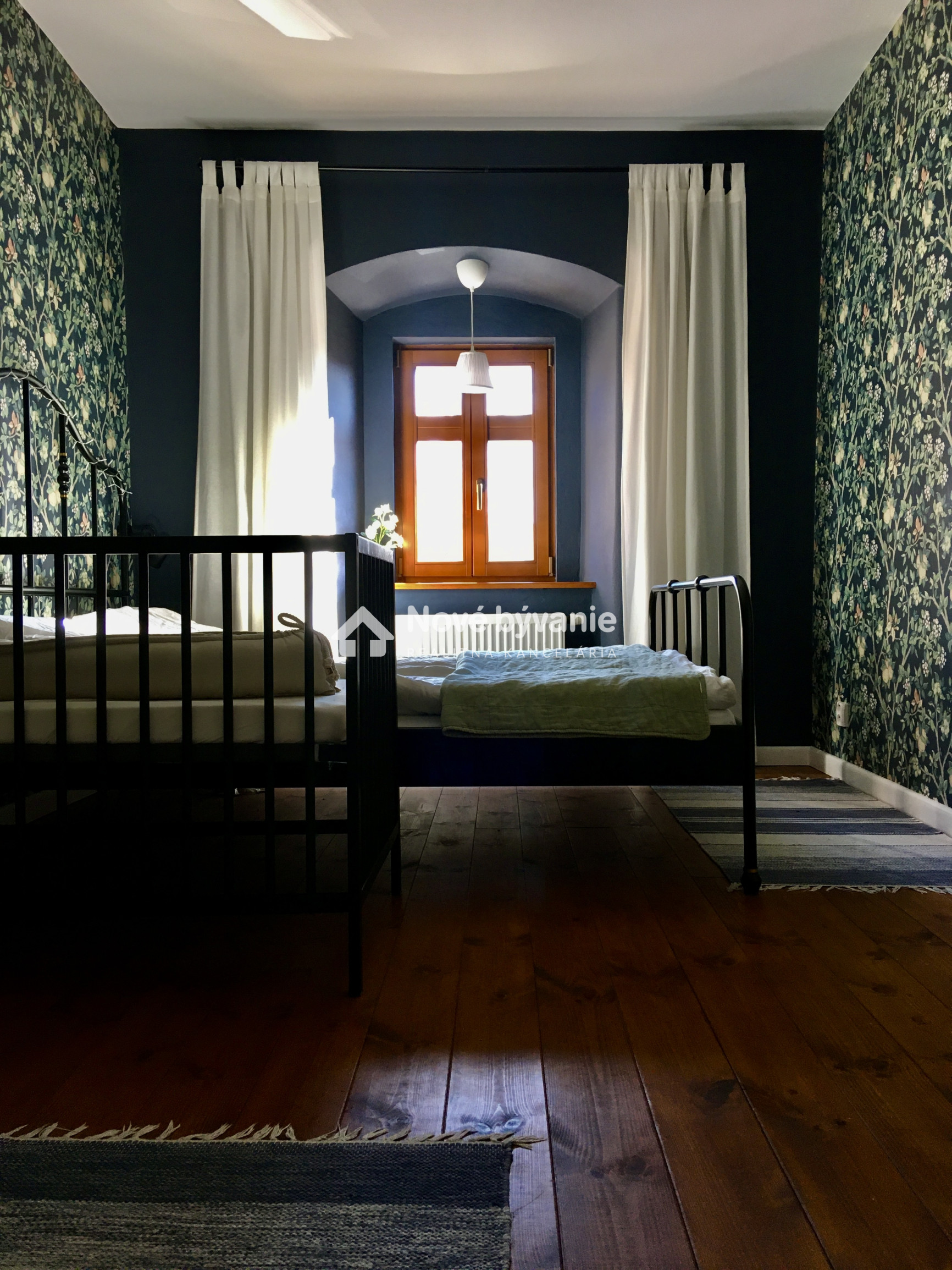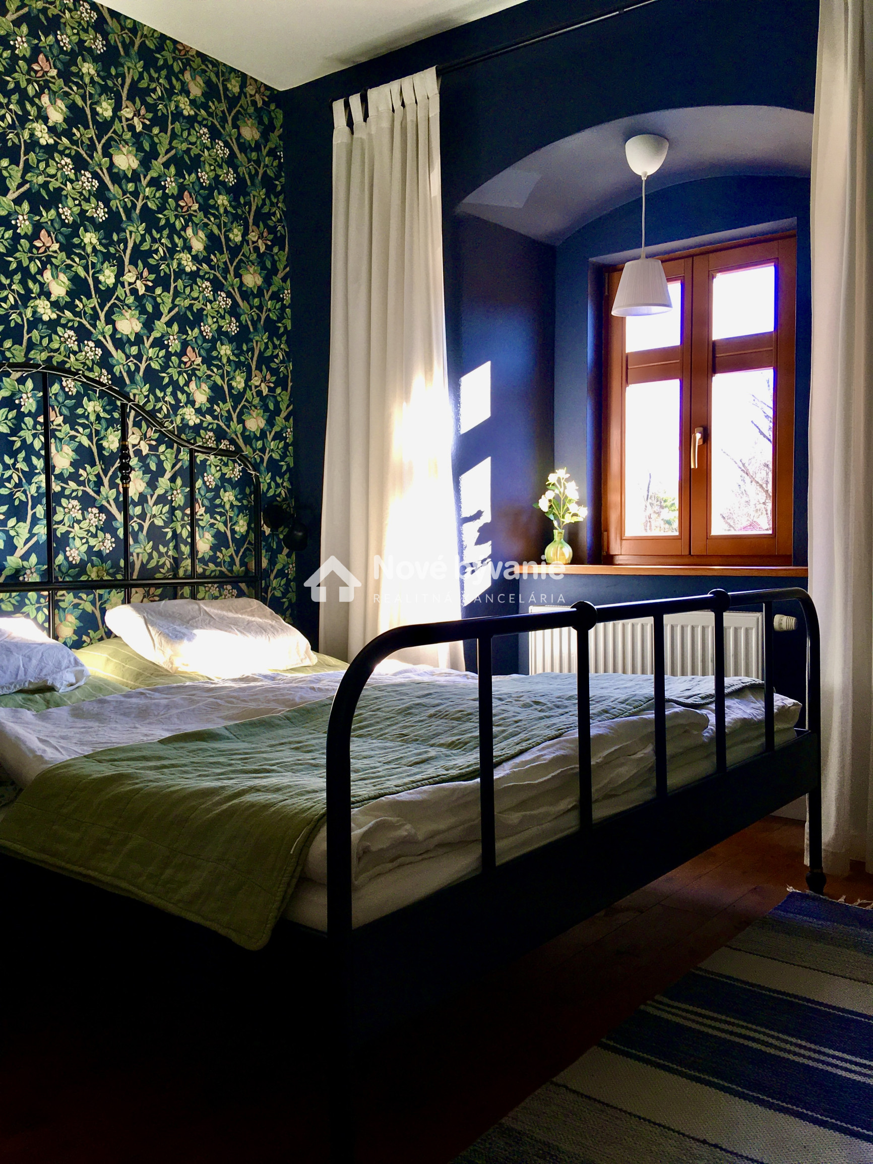 Stropy zdobia originálne, ručne ošetrené trámy – nádherný detail, ktorý okamžite pritiahne pozornosť. Podlahy sú zo sibírskej borovice – prémiového materiálu známeho svojou pevnosťou a krásou. Spálňa ponúka kombináciu elegancie a komfortu – tmavé, hĺbavé tóny farieb, luxusné tapety Boras Tapeter dovezené zo Škandinávie a výhľad na ulicu s historickým kostolom. Zo spálne sa vstupuje do veľkorysého šatníka, ktorý svojou veľkosťou a prepracovaním prekvapí aj tých najnáročnejších.