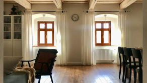 Byt sa nachádza v meštianskom dome s historickým duchom, ktorý prešiel kompletnou rekonštrukciou v roku 2013. Dispozícia pozostáva z kúpeľne s toaletou, útulnej kuchyne s kompletným vybavením a veľkej obývacej miestnosti s jedálenskou časťou, ktorú možno premeniť na ďalšiu izbu.