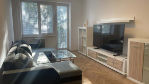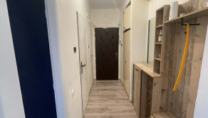 Byt pozostáva z dvoch izieb, kuchyne, kúpeľne, WC a predsiene. Súčasťou bytu je aj balkón a tri pivničné priestory. Okná sú plastové, bytové jadro je pôvodné.