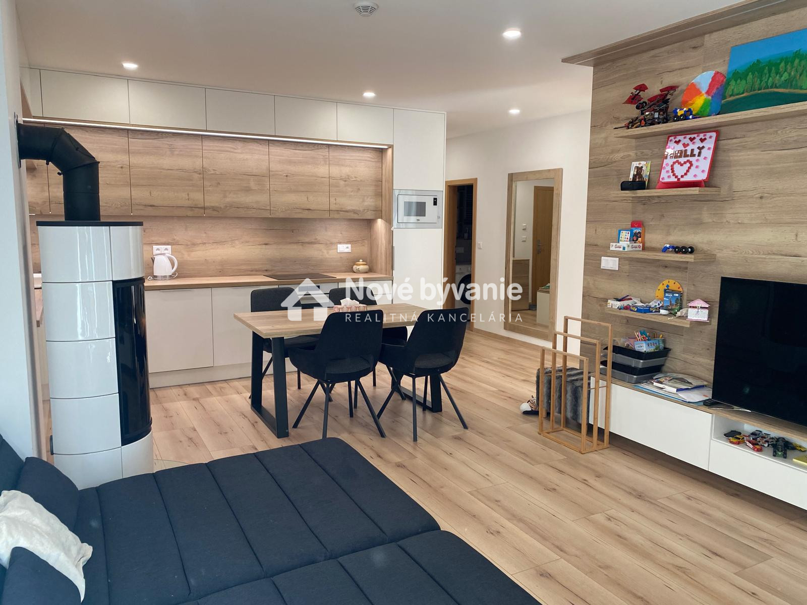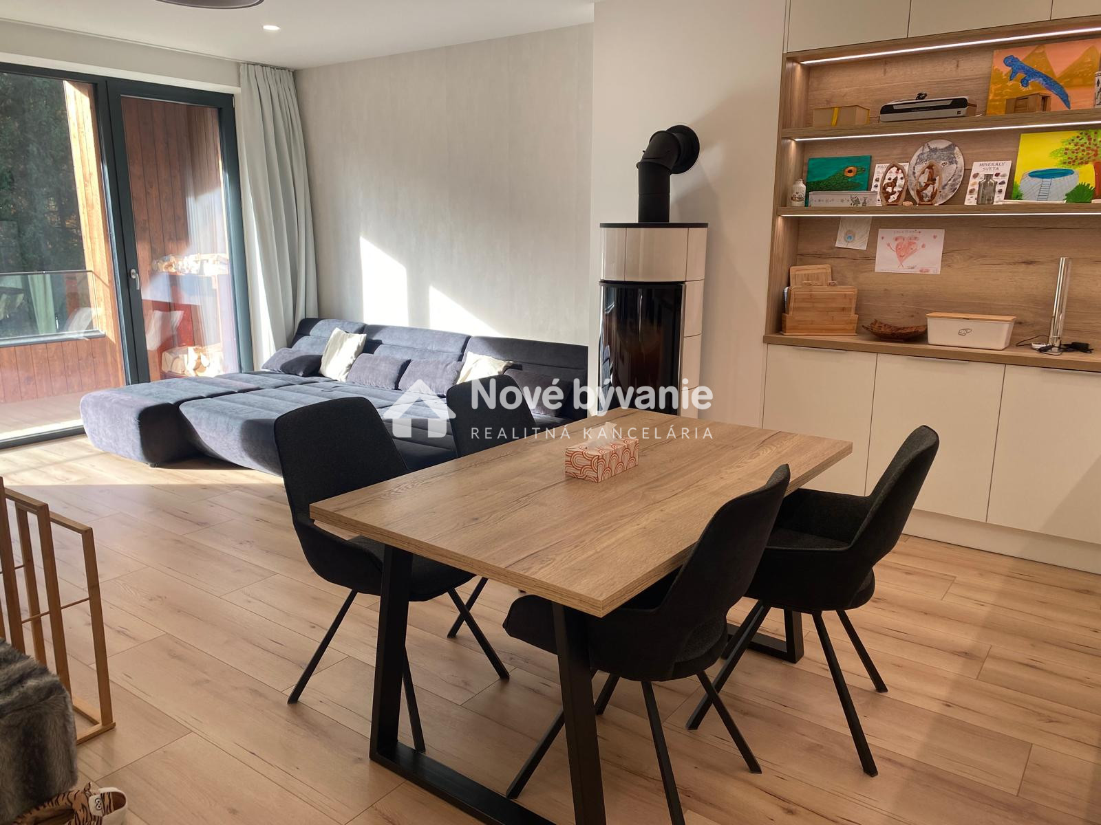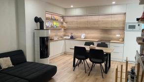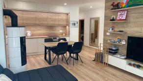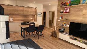 Hlavnými výhodami je krb v obývačke, ktorý vytvára teplú atmosféru horského apartmánu, veľká slnečná terasa po celej dĺžke bytu, moderný nábytok robený na mieru – kvalitné prevedenie, bez potreby ďalších investícií, elektrické podlahové kúrenie – komfortné a ekonomické, garážové státie – veľká výhoda, keďže sú v dome limitované, novostavba – skvelý technický stav, uzavretý a bezpečný areál.