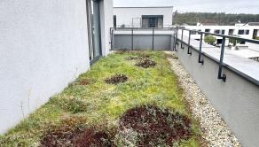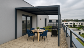 Vstup na terasu je možný zo spálne aj z obývačky. Terasa je obložená dlažbou.