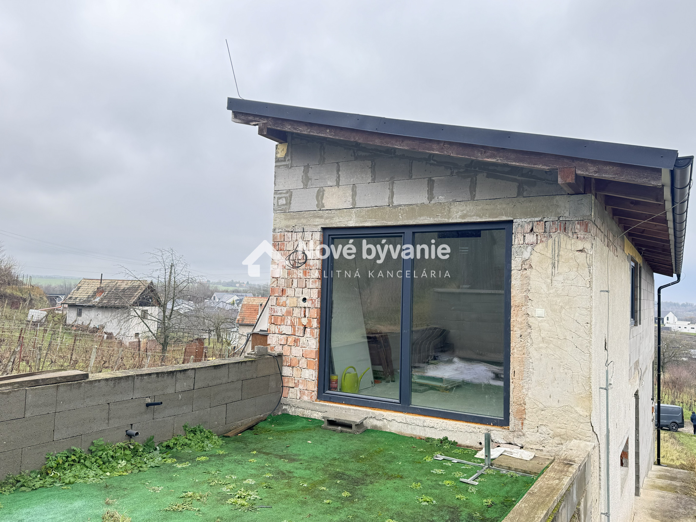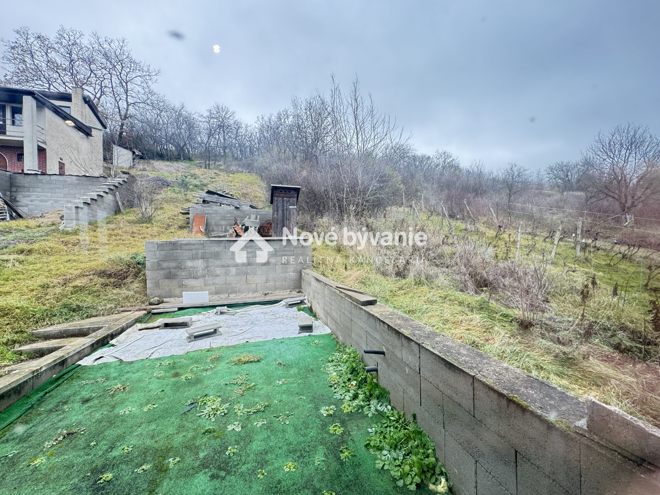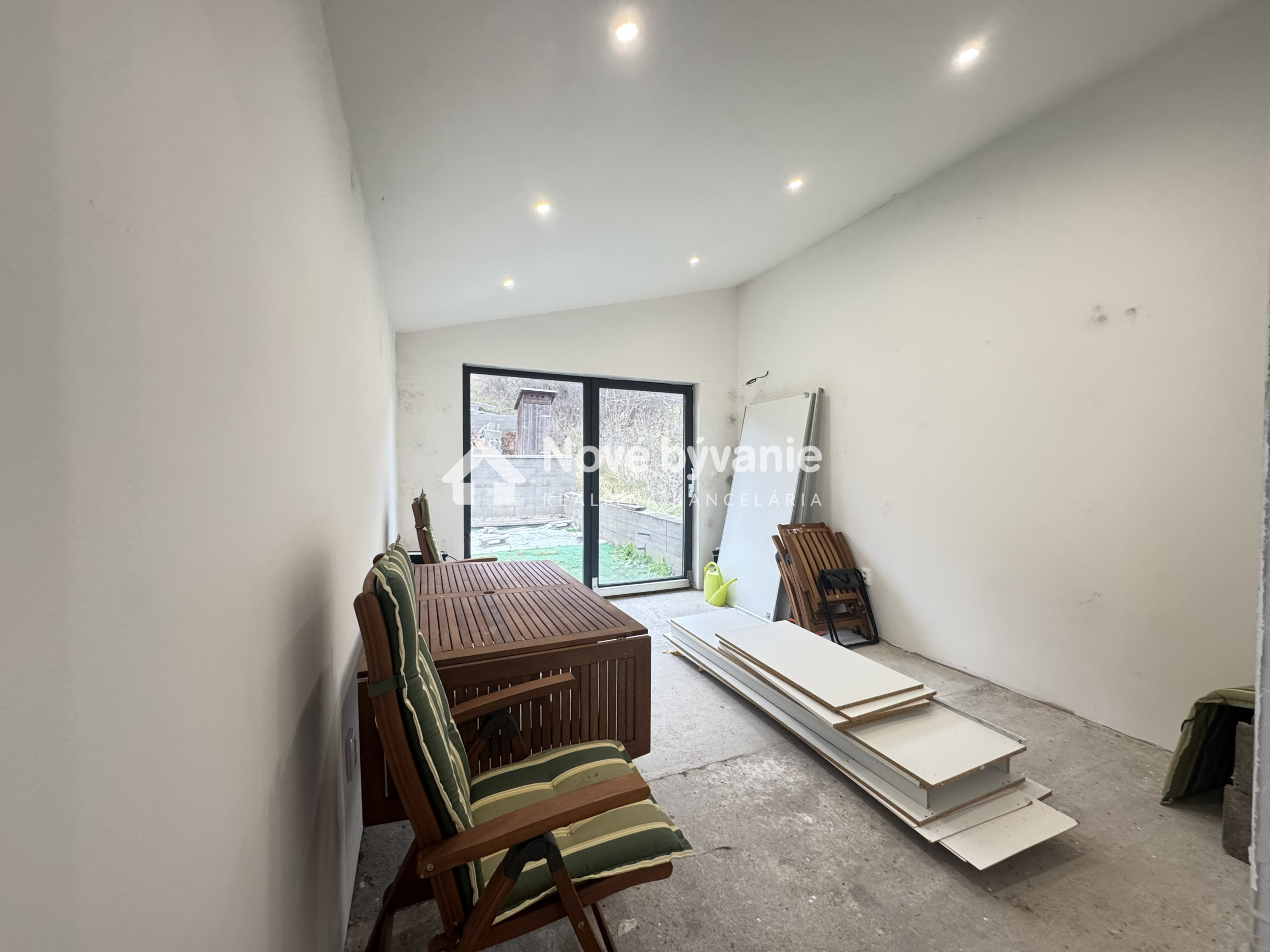 - za domom veľká terasa vhodná na bazén alebo oddychovú zónu