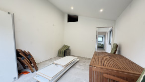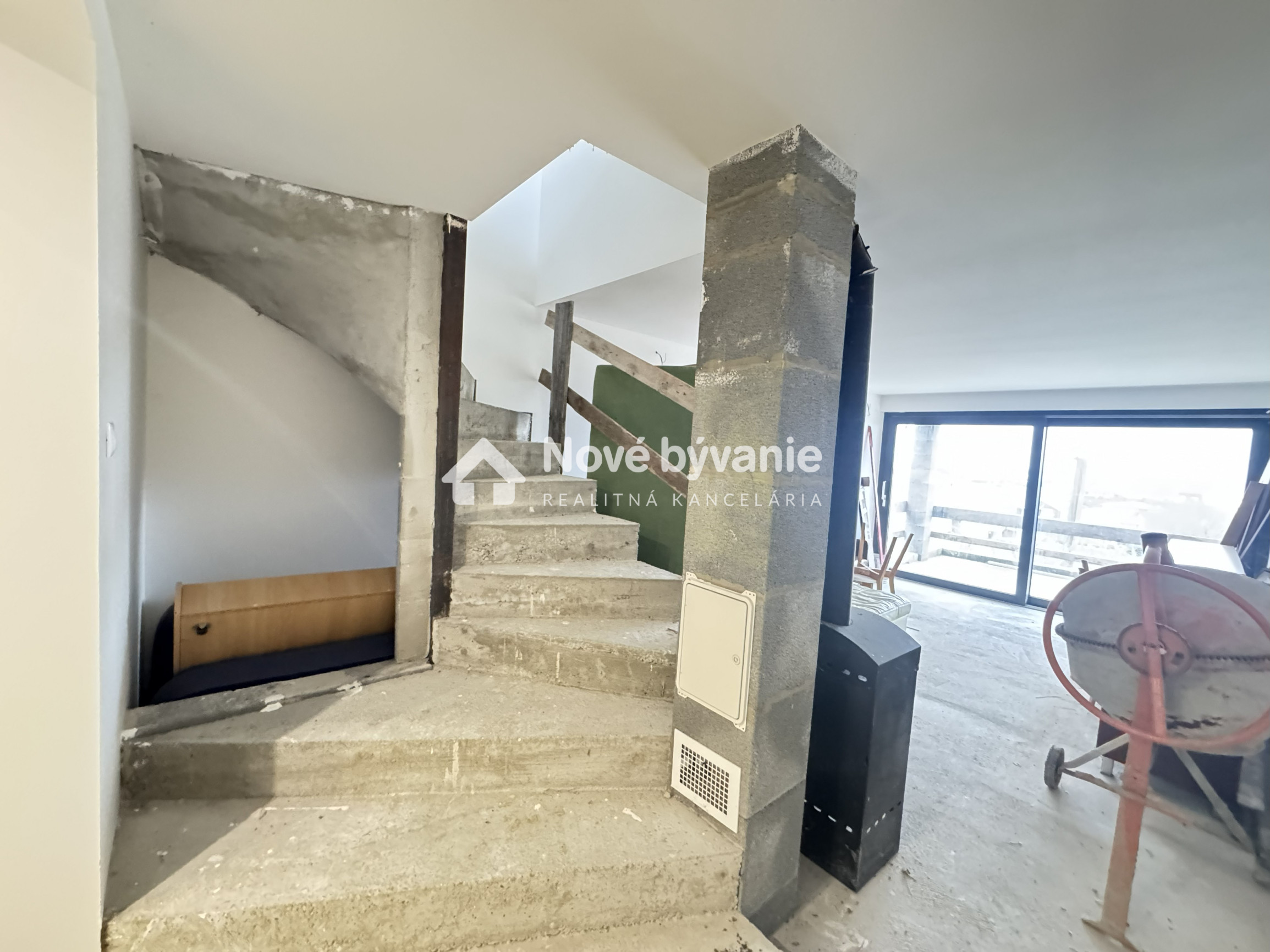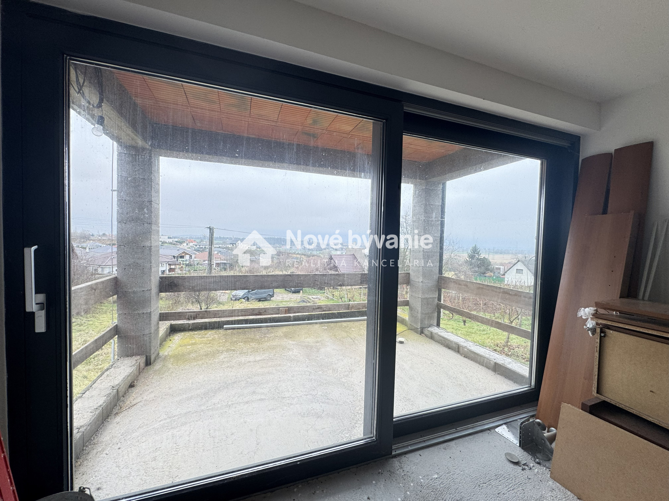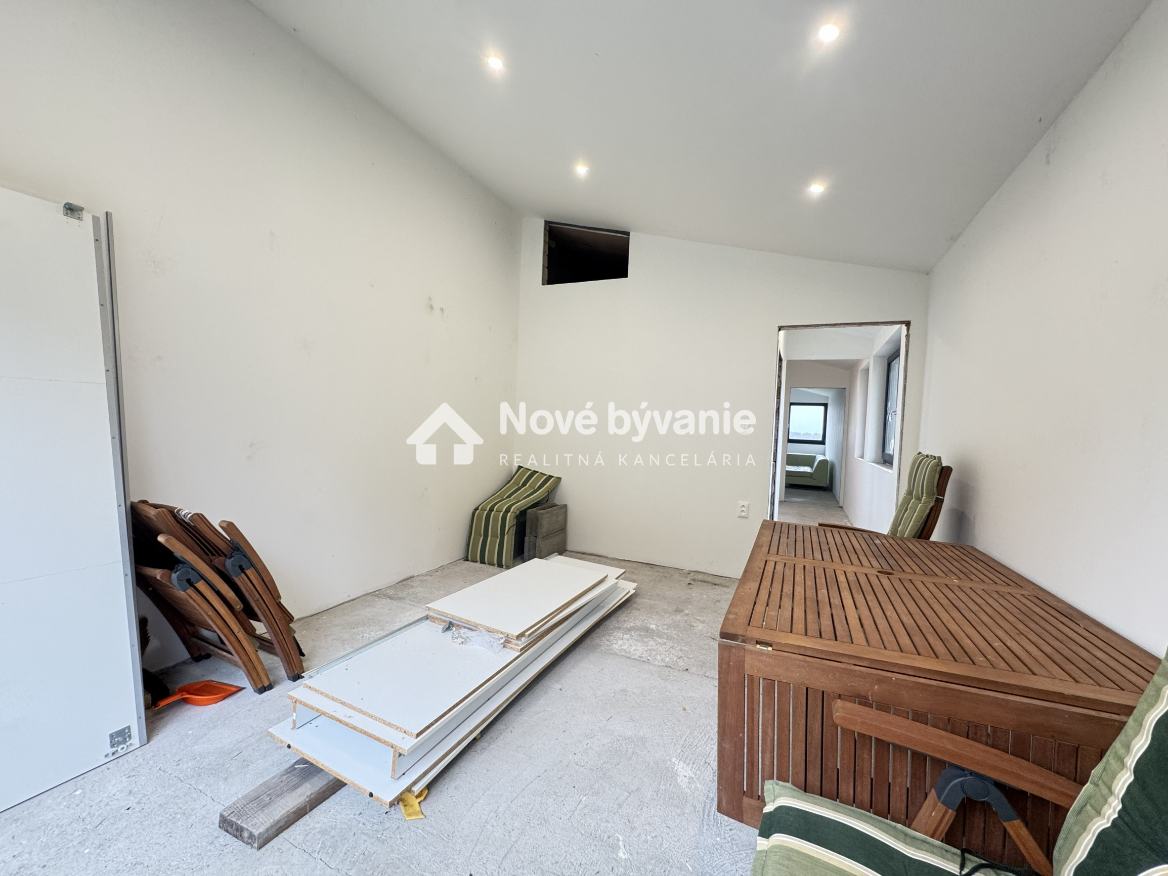 - za domom veľká terasa vhodná na bazén alebo oddychovú zónu