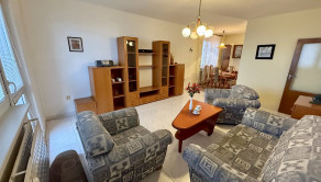 Obývačka- sedačka, TV zóna, stolík, kreslo-2ks, komoda, skrinky, dlažba - výstup na loggiu s výhľadom na rodinné domy