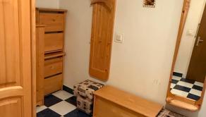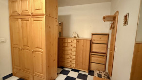 Vstupná hala - šatníková skriňa, komoda, 2x skrinky na topánky, zrkadlo, vešiaková stena na kabáty, 2x taburetka, dlažba