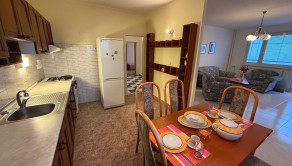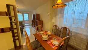 Byt má obývaciu izbu s výstupom na priestrannú loggiu, prepojenú s jedálenským sedením pre 6 osôb a kuchyňou a 2 nepriechodné izby.