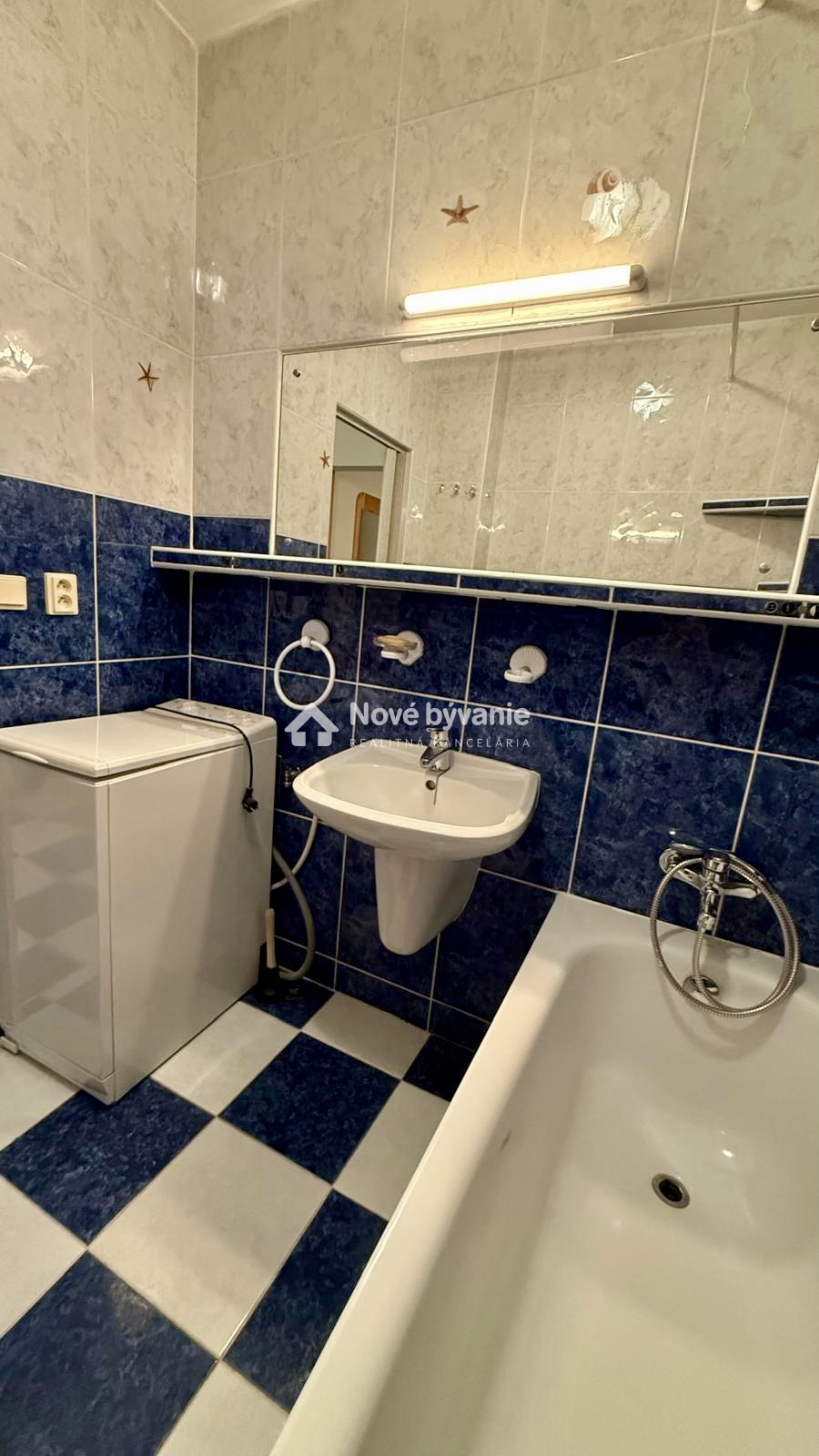 Kúpeľňa - umývadlo, vaňa, práčka, zrkadlo, keramická dlažba