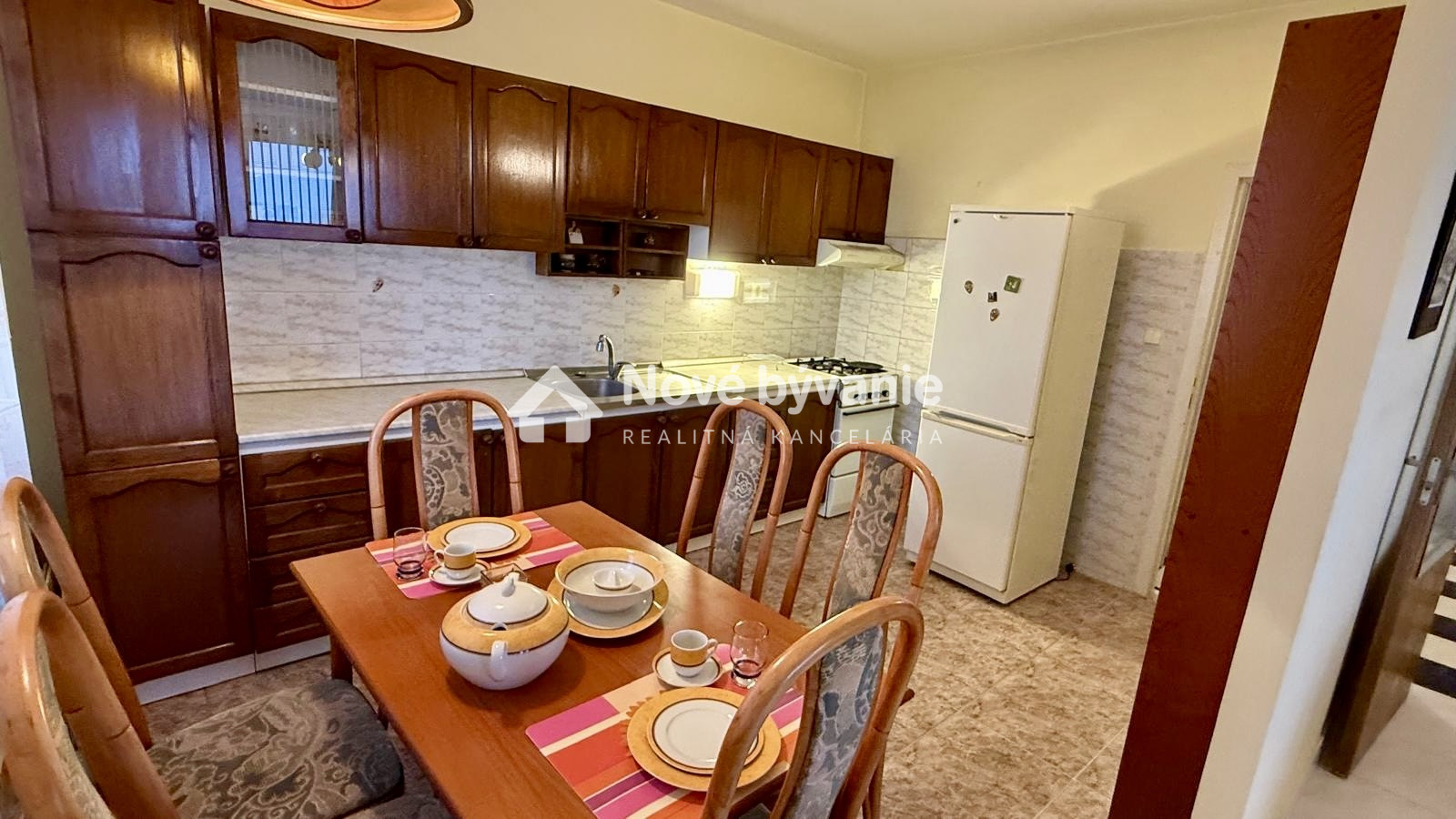 Kuchyňa - kuchynská linka, sporák, chladnička s mrazničkou, jedálenský stôl, 6x stoličky - sedenie pri okne