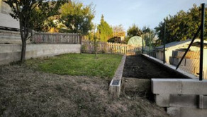 Upravená Záhrada: Pozemok je upravený do atraktívnych kaskád, osadený ovocnými stromami a kríkmi, pripravený na jarnú výsadbu trávy.