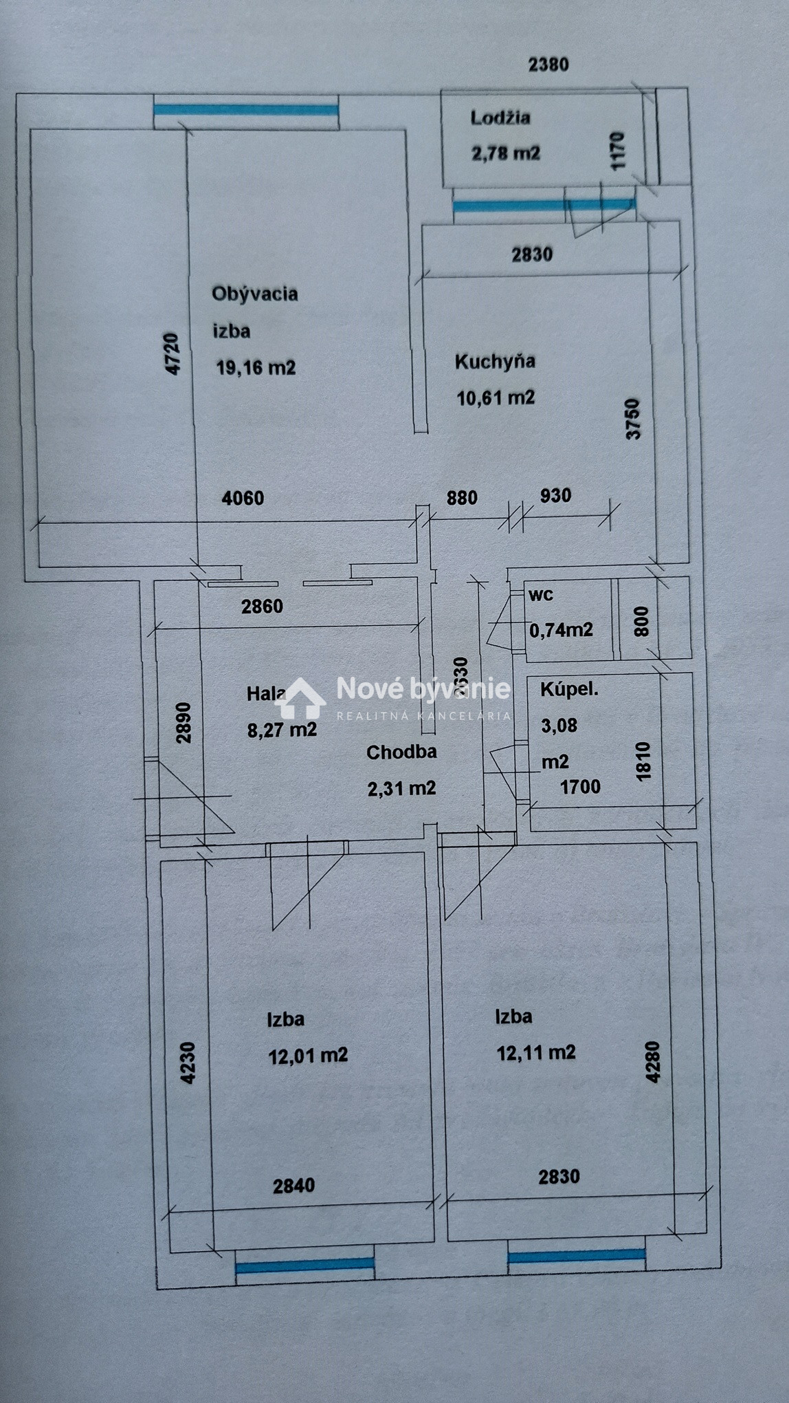 PLOCHA BYTU: 70m2 + loggia z kuchyne 2,8 m2 orientovaná do tichého dvora