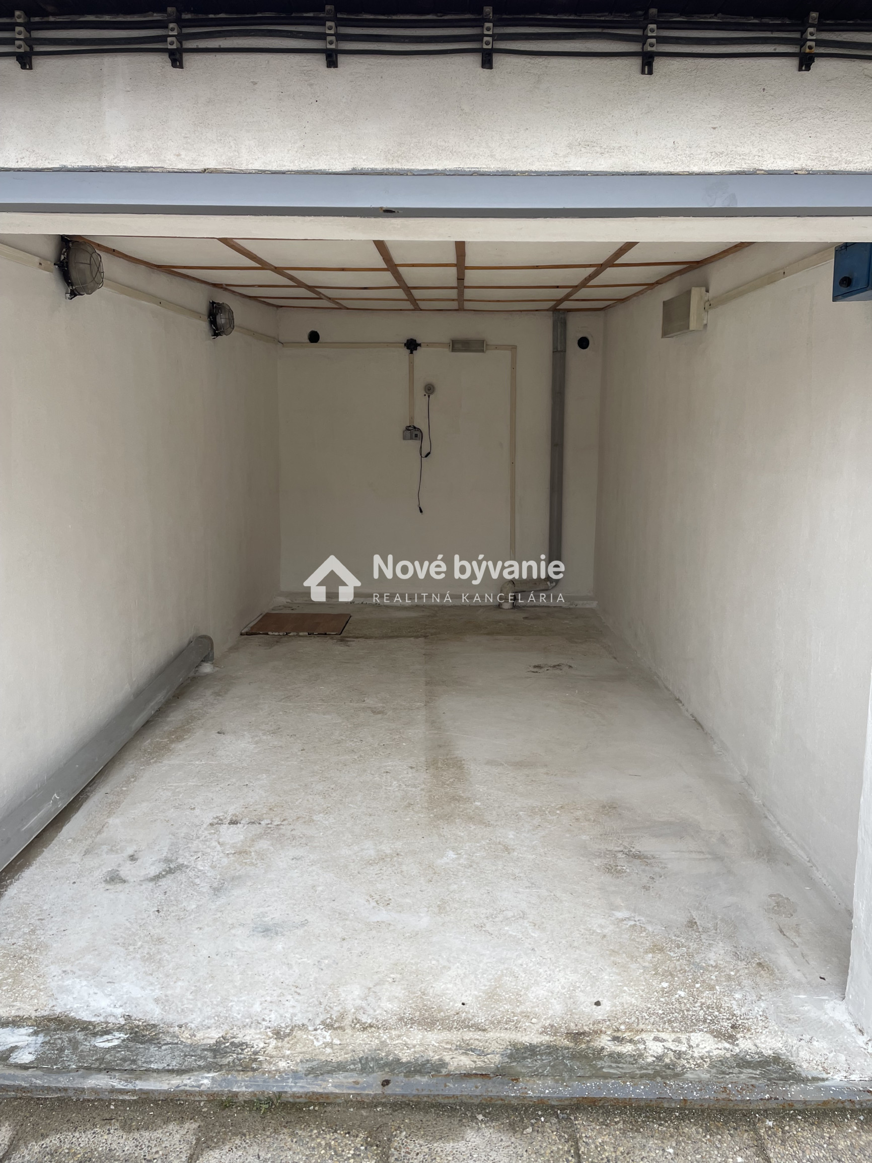 Garáž je vymaľovaná, suchá a má zavedenú elektrinu – vhodná na parkovanie aj ako skladový priestor.