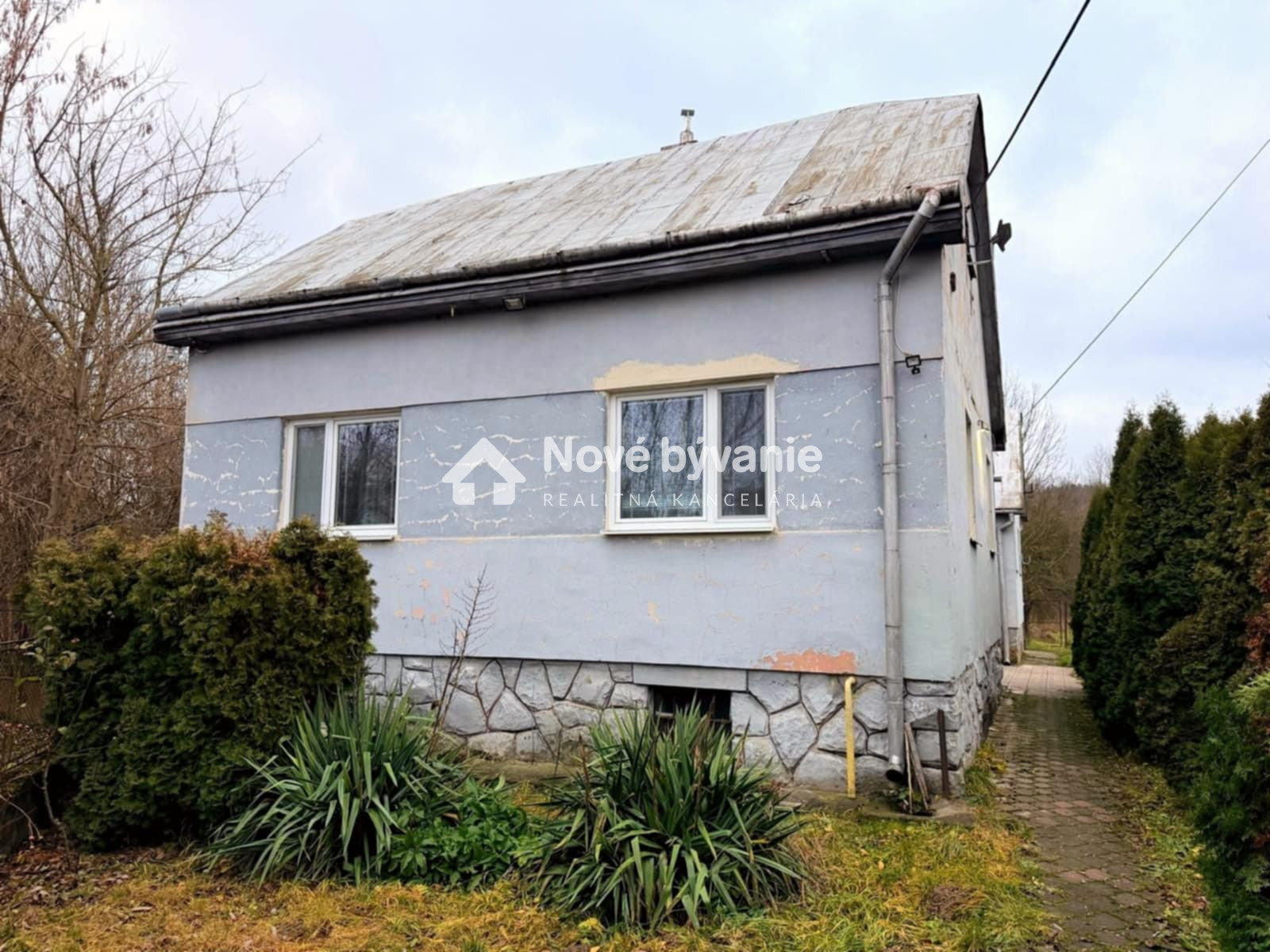 poctivá kamenná stavba s plechovou strechou