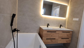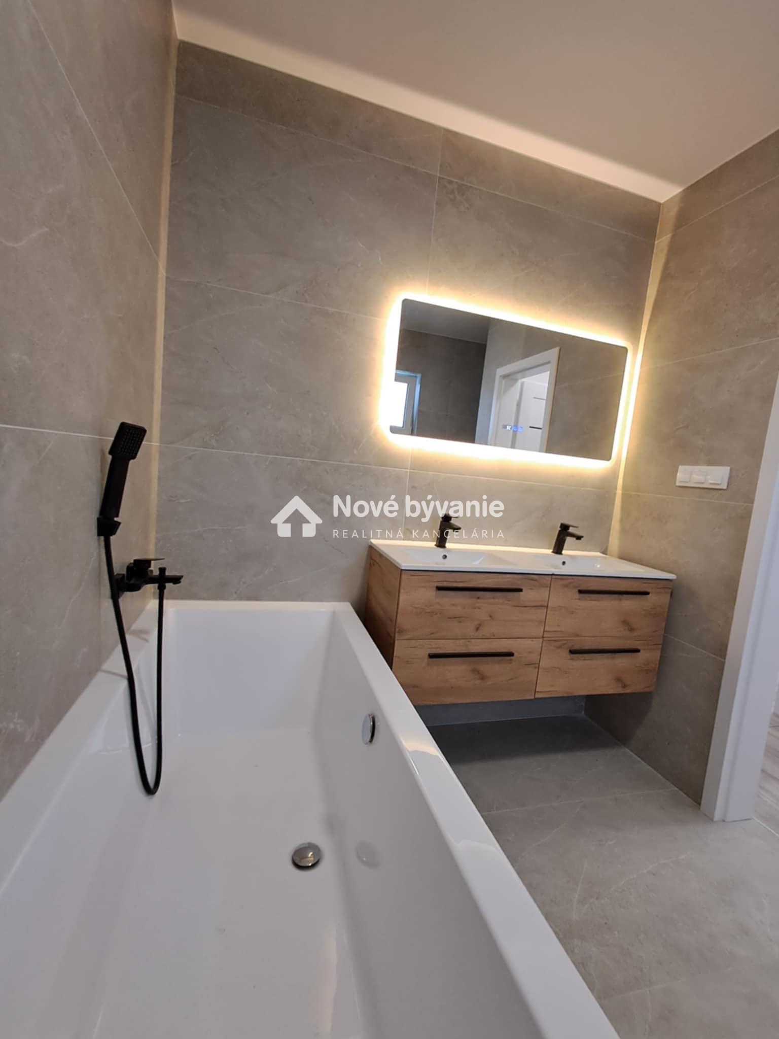 Kúpeľňa s WC: vaňa, umývadlá, sprchový kút