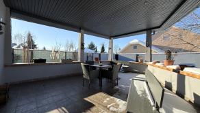 Prvá bytová jednotka s úžitkovou plochou 130 m² sa nachádza na pozemku o výmere 418 m². Prešla kompletnou rekonštrukciou vrátane elektroinštalácie, vodoinštalácie, podláh, omietok, kúrenia, zateplenia a izolácie podkrovných miestností. Vykurovanie je riešené elektrickým kotlom a k bytu prislúcha aj vlastný bazén.
