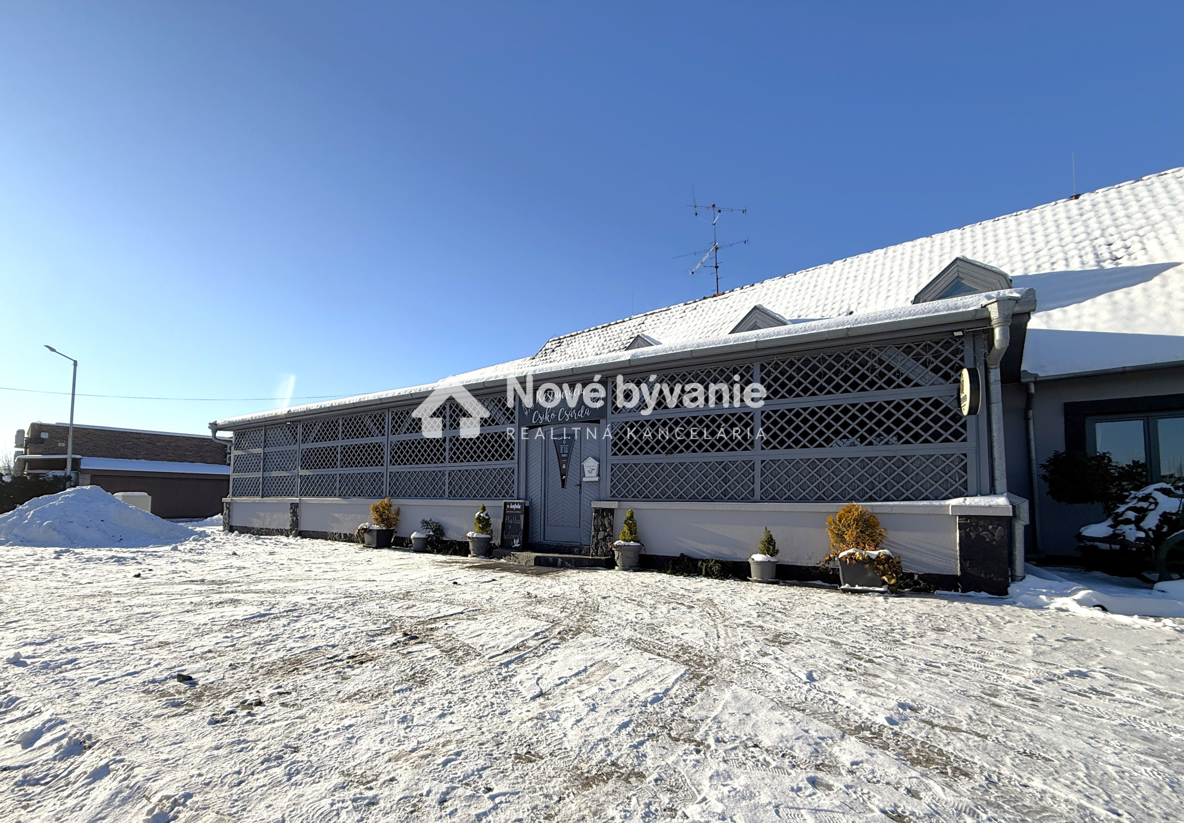 Celý objekt sa nachádza na pozemku o celkovej výmere 1 067 m² a disponuje vlastnými parkovacími miestami minimálne pre 10 áut, ako aj garážou. Zastavaná plocha budovy je 466 m². Nehnuteľnosť prešla kompletnou rekonštrukciou v roku 1999, vrátane elektroinštalácie, vodoinštalácie a strechy. V tom istom roku bola pristavaná priestranná sála a veľká kuchyňa, ktorá je dodnes plne využívaná. Pred tromi rokmi prebehla rekonštrukcia toaliet a v roku 2025 bol vymenený nový plynový kotol.