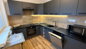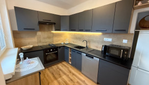 kuchyňa - komplet vybavená nová kuchynská linka - kombinovaná varná doska - 2x sklokeramika, 2x plyn, el. teplovzdušná rúra, digestor, umývačka riadu, chladnička s mrazničkou