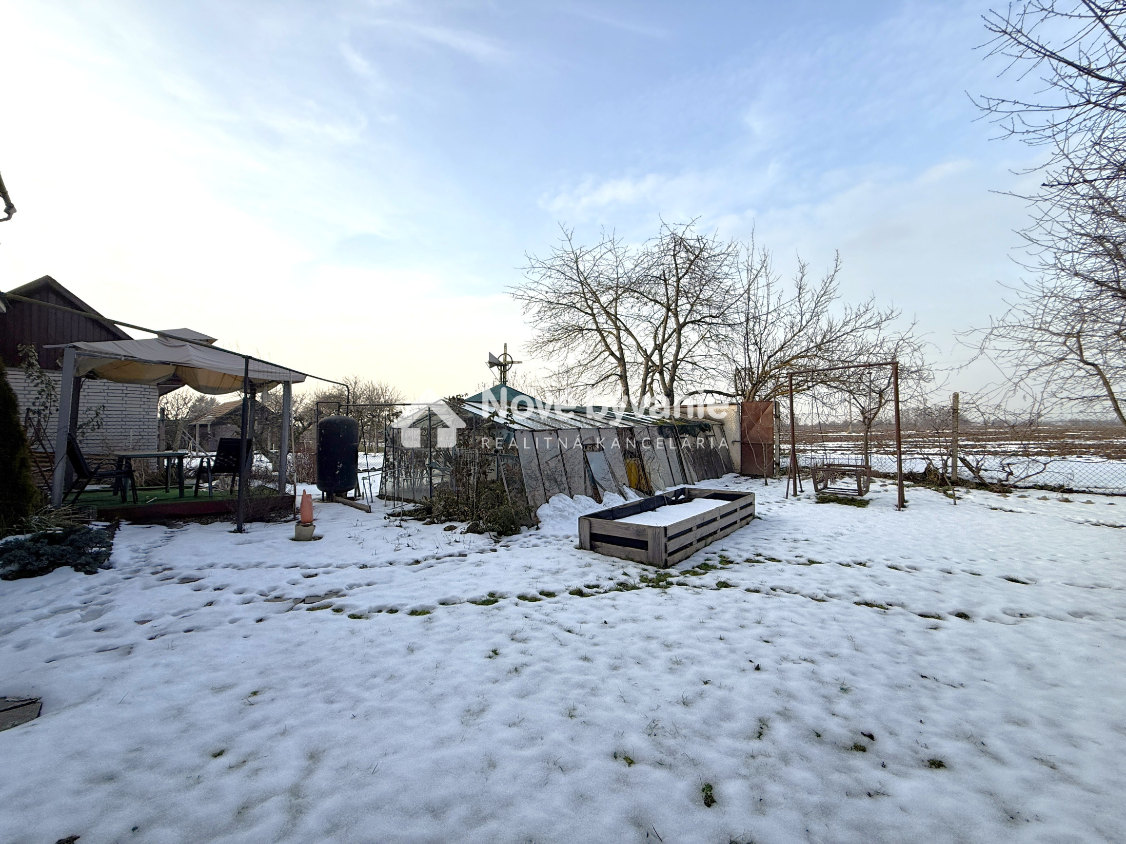 Pozemok o výmere 518 m² ponúka príjemné súkromie a nachádza sa na ňom skleník, bazén a jazierko, ktoré dotvárajú pokojné prostredie na oddych.