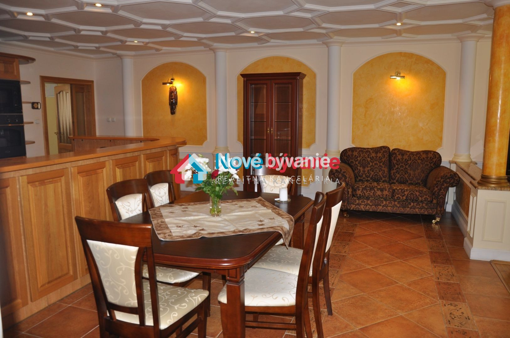 Byt sa prenajíma kompletne zariadený štýlovým nábytkom na mieru, s dubovými parketami, sádrovými omietkami, dlažbami Gardenia Orchidea.