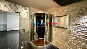 Na prízemí sa nachádza vstupná hala, 2 priestranné obývacie izby s jedálňou, s vysokými stenami, skleneným stropom s tienením, obložené po bokoch prírodným kameňom, francúzskym krbom, 2 schodišťami. Samostatná miestnosť s veľkým oknom na celú stenu, aby ste videli celú panorámu mesta ako na dlani - môže byť pracovňa, prijímací salón, podľa Vášho uváženia...