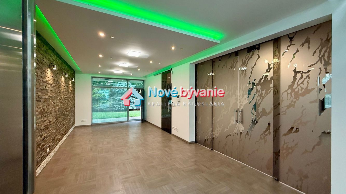 Chladené stropy, klimatizácia, podlahové kúrenie, veľkoformátové hliníkové okná s izolačným trojsklom, zabezpečovací systém...