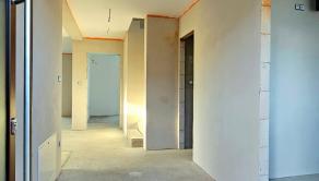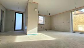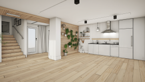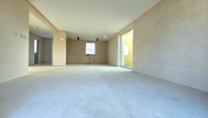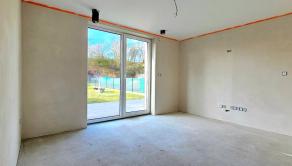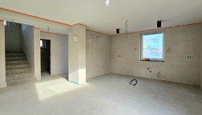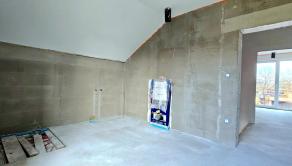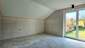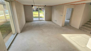 Prízemie: Kuchyňa prepojená s obývačkou s krbom (s externým prívodom vzduchu) a s východom na terasu. V kuchyni predpríprava na kuchynskú linku s ostrovčekom, hosťovská izba s východom na terasu a menším šatníkom, technická miestnosť, kúpeľňa s predprípravou na sprchový kút a WC, schodisko, terasa