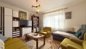 S obytnou plochou približne 120 m² ponúka dom predsieň, štyri nepriechodné izby a jednu prechodnú izbu, samostatnú kuchyňu, jedáleň a kúpeľňu spojenú s toaletou.