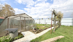 Záhrada ponúka priestor na pestovanie aj relax, nachádza sa tu skleník, černice, jahody a ovocné stromy ako jabloň a hruška.