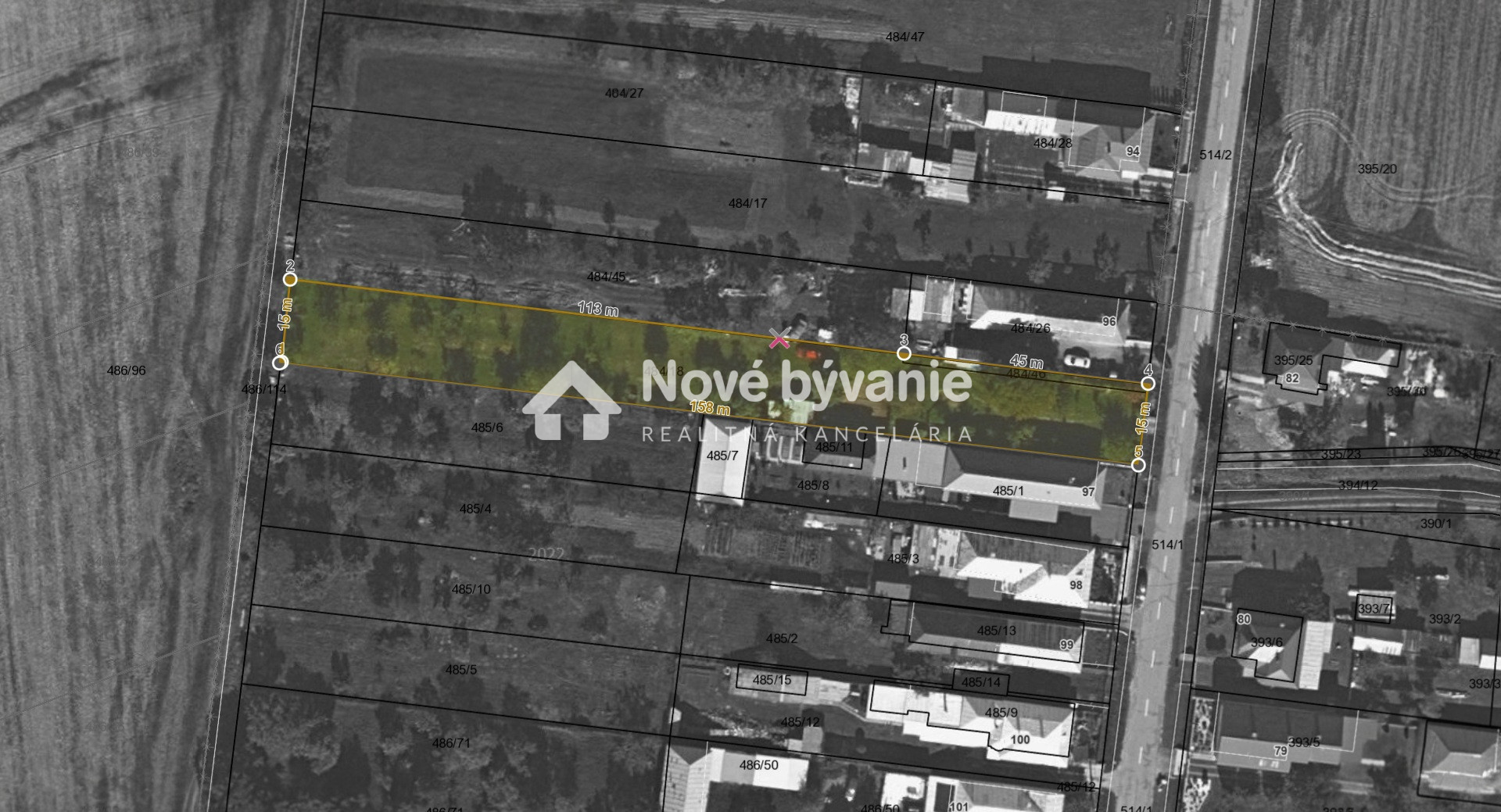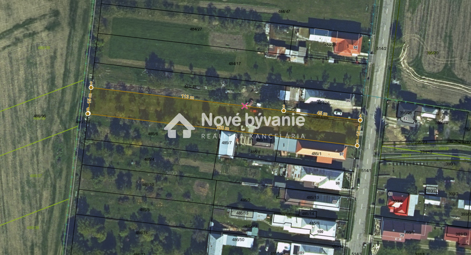 Pozemok sa nachádza v zastavanej časti obce (intravilán), je rovinatý s celkovou rozlohou 2 393 m² a rozmermi cca 15 - 16m (šírka) × 158 m (dĺžka).
